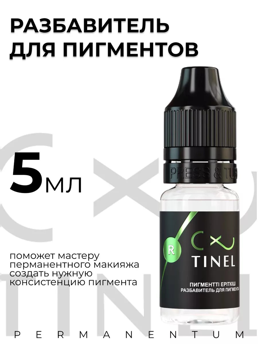 Tinel pigment thinner 5 ml, pigment thinner allows permanent makeup artists to create the desired pigment consistency and can also be used to lighten color. This specially developed formula, whose chemical composition matches that of the Tinel brand pigment line, is designed to be used as a pigment thinner. Directions: Add a drop of thinner to the pigment and shake thoroughly. Supplied in a 10 ml plastic bottle. Tinel is an in-house production facility based on European quality standards, equipped with the most advanced and environmentally friendly equipment, automatic production lines, and packaging of pigments and other products. Tinel eyebrow pigments, Tinel eyebrow pigments, Tinel lip pigments. Tinel permanent makeup pigments. Suitable for KWADRON Quadron, Must Must E3, Defender cartridges, and all types of Xion/Xion Mini Spectra, Ruby, and Puzatik machines. Permanentum Permanentum.