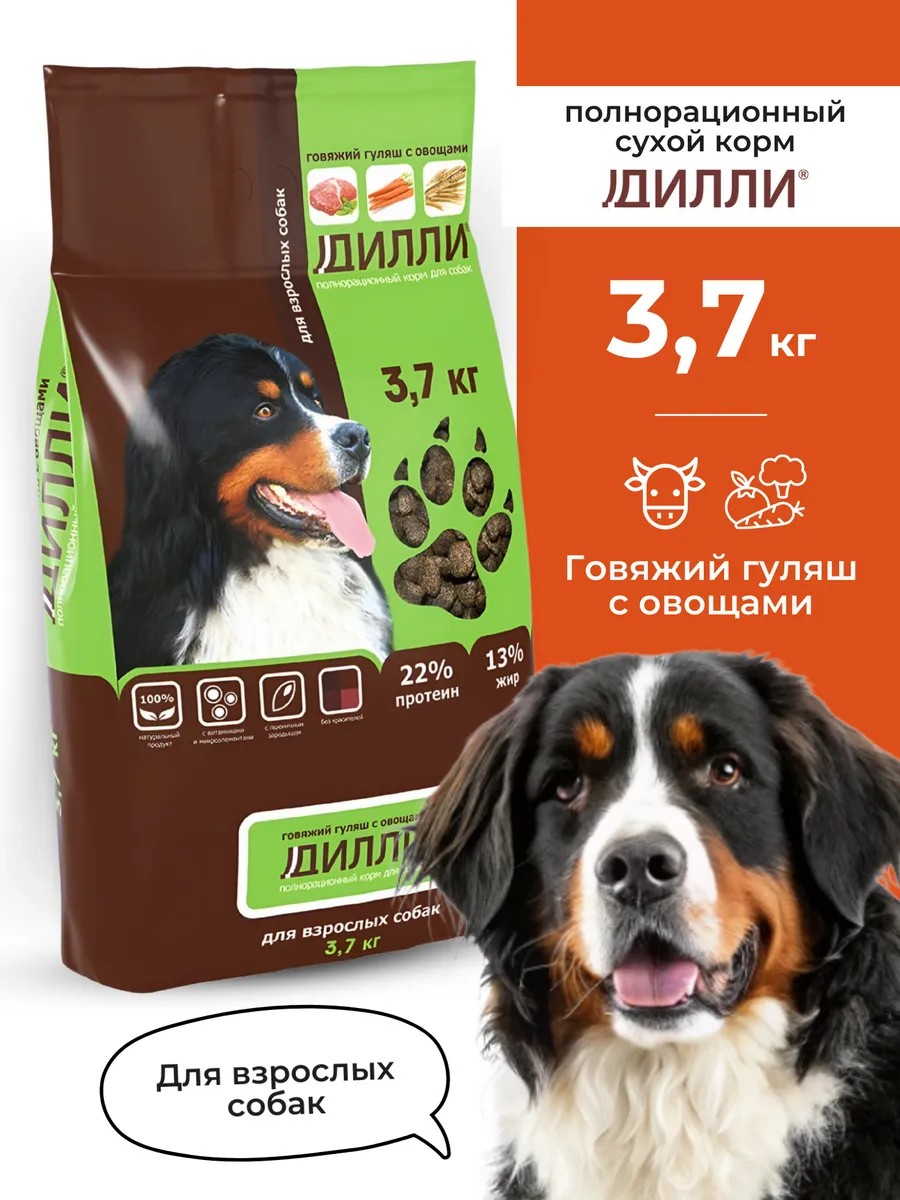 ДИЛЛИ Корм для собак сухой 3,7 кг Говяжий Гуляш