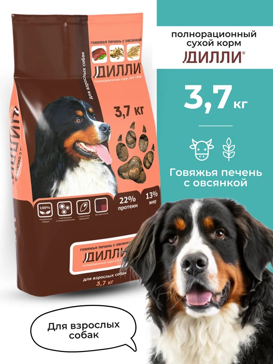 ДИЛЛИ Корм для собак сухой 3,7 кг Говяжья Печень