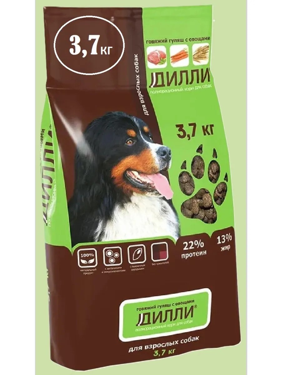ДИЛЛИ Корм сухой для собак гуляш с овощами 3,7кг