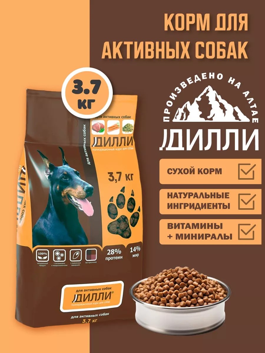 ДИЛЛИ Корм для активных собак сухой 3,7 кг