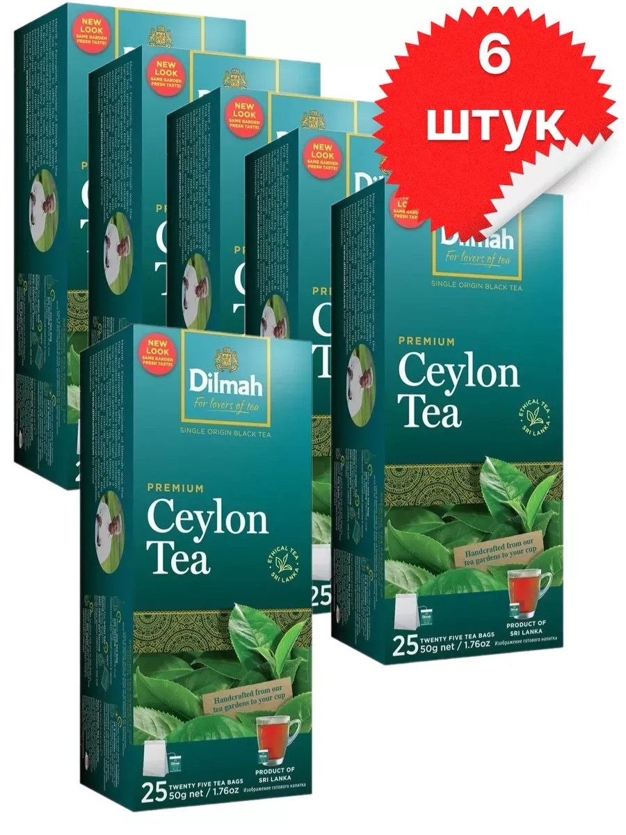 Dilmah Цейлонский черный чай 25 пакетиков, 6 упаковок