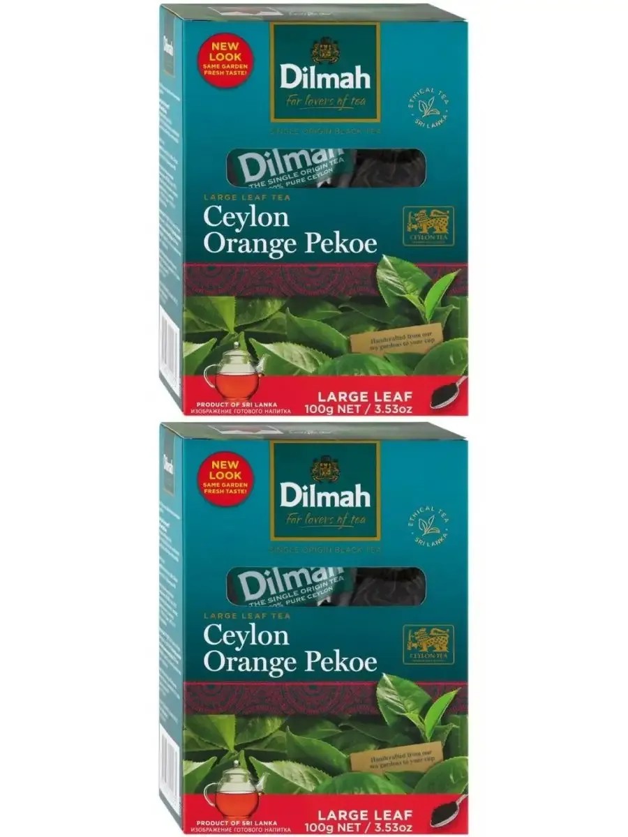 В комплекте 2 упаковки по 100 гр. Dilmah, Чай крупнолистовой черный Цейлонский. Это благородный, исключительно цейлонский листовой чай, богатый вкусом и ароматом. Выращен и упакован на Цейлоне (Шри-Ланка). Качество заварного чая листового видно в окошке на пачке. Качество, свежесть, подлинность и этика в чае - основные ценности компании и продуктов Dilmah.