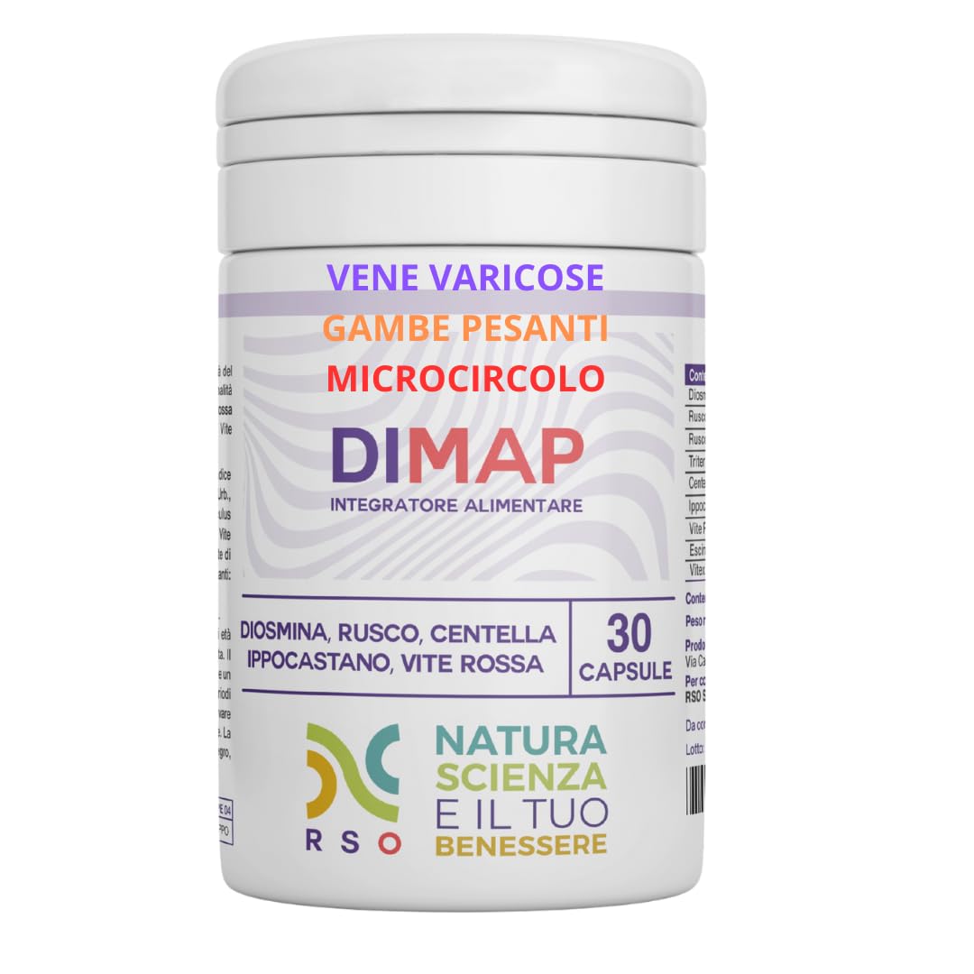 DIMAP Circulation Jambes Gonflées et Varices Diosmina 500 mg, Centella, Rusco 30 Capsules Complément pour Lourdeur, Microcirculation et Capillari Fabriqué en Italie