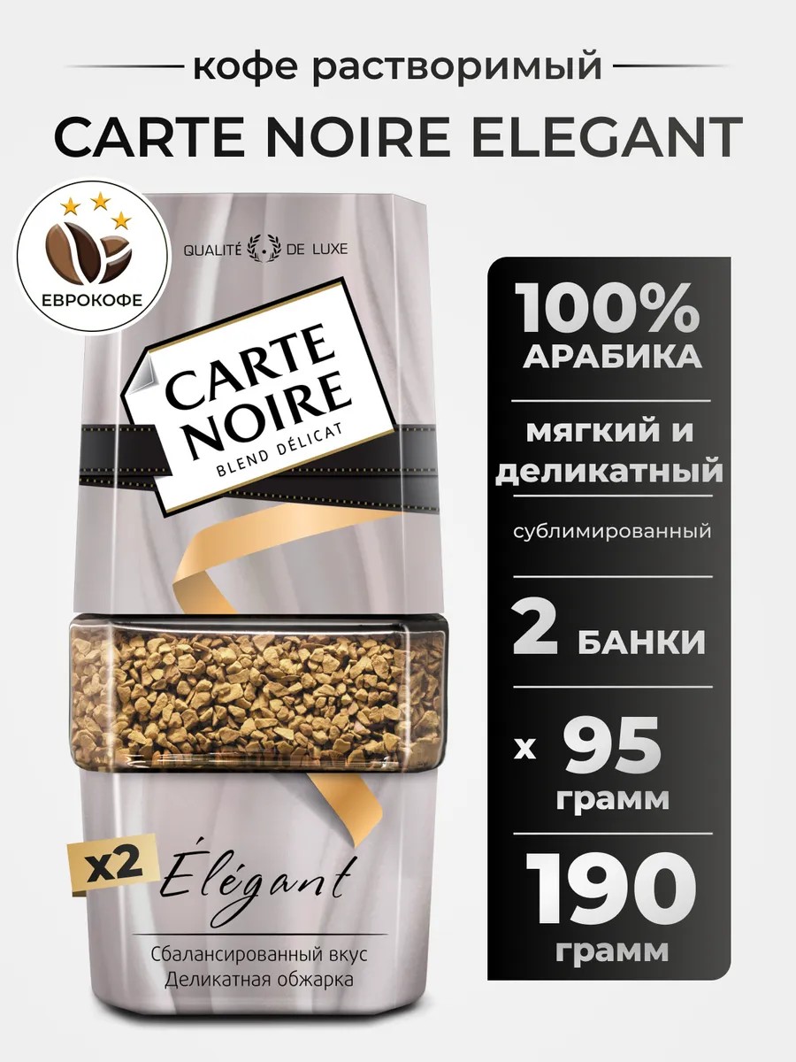В наборе 2 стеклянные банки по 95 грамм. "Élégant в коллекции Carte Noire – это совершенное воплощение утонченности вкуса.Специально отобранные кофейные зерна и их деликатная обжарка создают безупречно сбалансированный вкусовой букет с изысканными фруктово-цветочными нотками.Откройте чувственное сочетание силы и нежности в восхитительной композиции Карт Нуар Елегант!!"Насыпьте в чашку 1-2 чайные ложки кофе, добавьте горячей кипяченой (не кипятком) воды, размешайте.