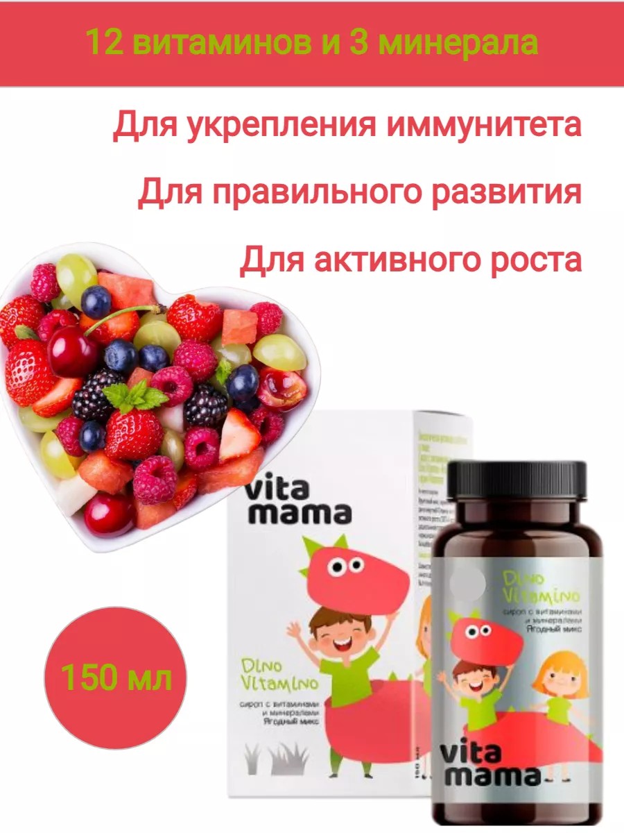 Dino Vitamino, ягодный сироп с витаминами и минералами - Vitamama. Подарите своему ребенку крепкое сибирское здоровье!