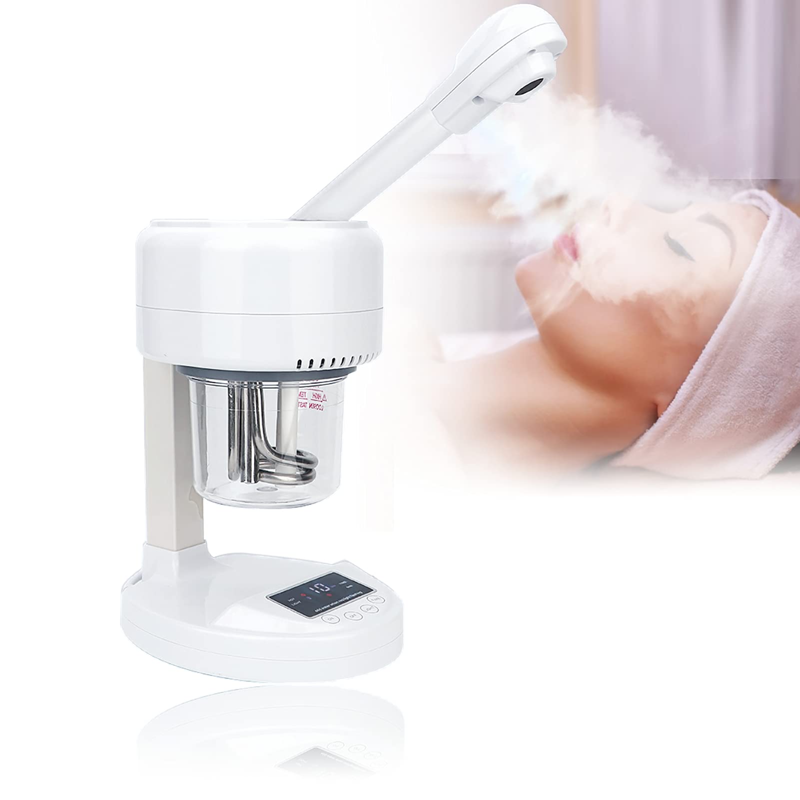 Exquisite Design: This spa facial steamer features a touch-sensitive design for easier and more comfortable use. It's heat-resistant and rust-resistant. The large-capacity water tank is economical and affordable. It can help dry skin regain moisture in autumn and winter, leaving it smooth and supple. Facial sauna. Improve Skin Problems: This facial steamer transforms water into high-temperature mist nanoparticles. The water mist gently covers the skin's surface and quickly penetrates deep into the skin. It improves skin problems caused by a lack of moisture and balances the skin's hydration. Deeply moisturizing oil keeps skin in good condition. Facial Mist. Suitable for All Skin Types: This tabletop facial steamer is suitable for dry, oily, and oily skin. You can also add essential oils, saline solutions, etc., to improve blood circulation and meet your various beauty needs. High mist output, low energy consumption, easy to use, compact body, can be placed on a vanity, desk, or bedside table. Facial steamer. Multifunctional: This warm mist nano facial steamer uses even spray technology to soothe and calm the skin, repair damaged skin, improve wrinkles, and effectively nourish the skin. It helps eliminate toxins from skin pores, improve wrinkles and delay aging, improve skin quality, make your skin stronger, and prevent dryness in autumn and winter. Facial steamer. Deep cleansing: The facial steamer can open and unclog pores and thoroughly cleanse the skin with warm steam. It helps detoxify the skin, softens oil, blackheads, makeup smudges, and dirt, and cleanses the face, leaving it red and delicate, white and smooth, healthy and full. Facial steamer.Vaporisateur Visage Moisturizing Facial Steamer pour le nettoyage en profondeur du visage, compact Vapeur Visage, Sauna Facial (type tactile) (EU 220 V)Design exquis : ce vaporisateur pour visage de spa dispose d'un design tactile qui rend votre utilisation plus facile et plus confortable, résistant aux températures élevées et ne rouille pas facilement. Le réservoir d'eau de grande capacité est économique et abordable. Il peut aider votre peau sèche en automne et en hiver à regagner l'humidité et rendre la peau lisse et élastique. Sauna facial. Améliorez les problèmes de peau : ce vaporisateur pour le visage transforme l'eau en nano-particules de brume haute température. La brume d'eau couvre doucement la surface de la peau et pénètre rapidement sur le fond de la peau. Il améliore les problèmes de peau provoqués par un manque d'humidité et équilibre l'hydratation de la peau. Huile profondément hydratante, maintient la peau en bon état. Brumisateur visage. Convient à tous les types de peau : le vaporisateur pour le visage Tabletop est adapté aux peaux sèches, grasses et grasses. Vous pouvez également ajouter des huiles essentielles, des solutions salines, etc. pour améliorer la circulation sanguine et répondre à vos différents besoins de beauté. Grande quantité de brumisation, faible consommation d'énergie, facile à utiliser, corps compact, peut être placé sur une coiffeuse, un bureau, une table de chevet. Vaporisateur visage. Multifonction : ce nano-vapeur pour le visage à brume chaude utilise une technologie de pulvérisation uniforme pour apaiser et apaiser la peau, réparer les peaux endommagées, améliorer les rides et nourrir efficacement la peau. Aidez à éliminer les toxines des pores de la peau, à améliorer les rides et à retarder le vieillissement, à améliorer la qualité de la peau, à rendre votre peau plus forte et à ne plus sécher en automne et en hiver. Vapeur visage. Nettoyage en profondeur : le cuiseur vapeur pour le visage peut ouvrir les pores, obstruer les pores et nettoyer soigneusement la peau du visage à la vapeur chaude. Aide à détoxifier la peau, adoucit les huiles, les points noirs, les taches de maquillage et la saleté et nettoie le visage rougeâtre et délicat, blanc et lisse, sain et plein. Vaporisateur facial.
