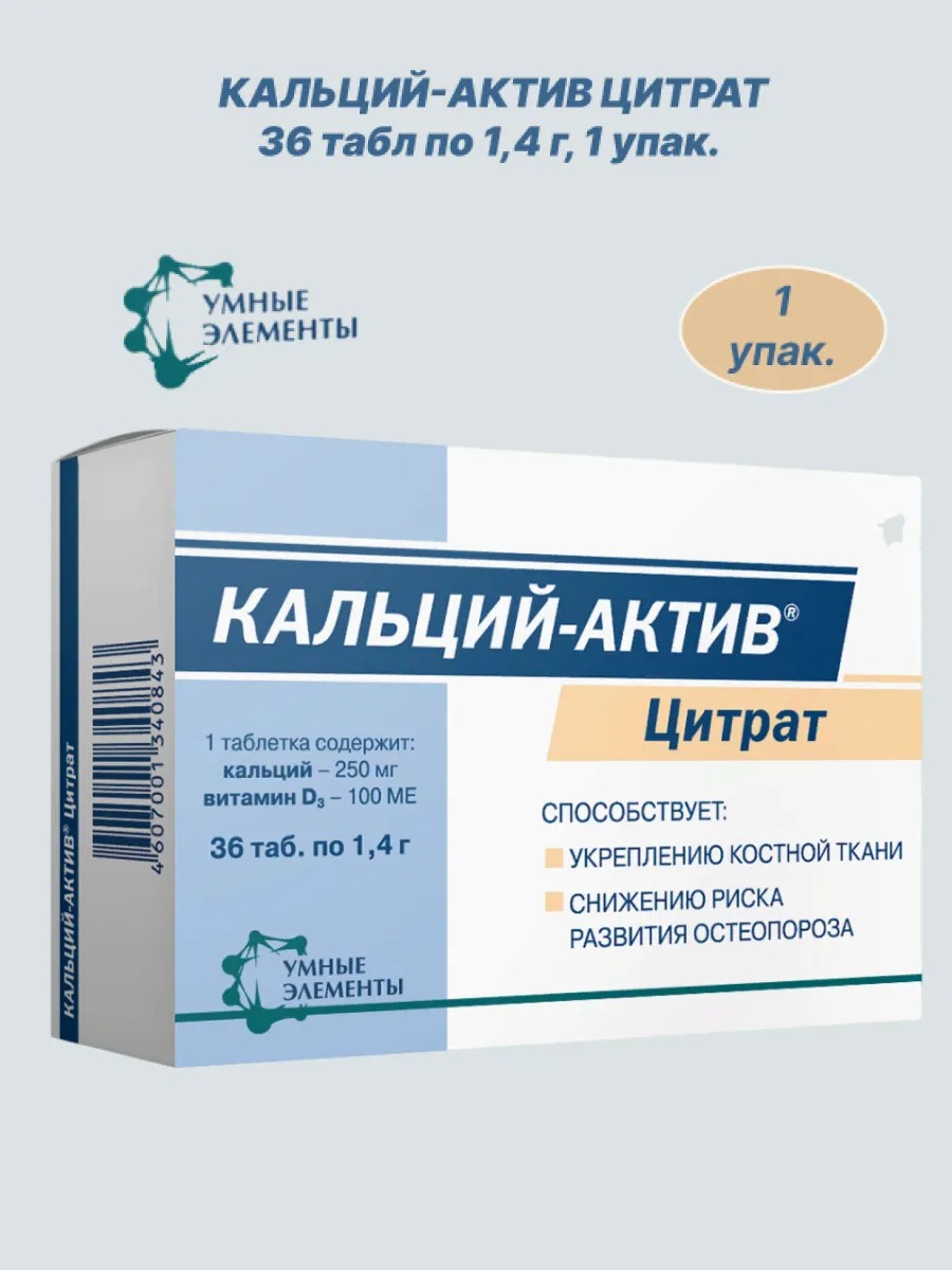 | Package | Calcium-Active Citrate 36 tablets of 1.4 g, 1 pack. |