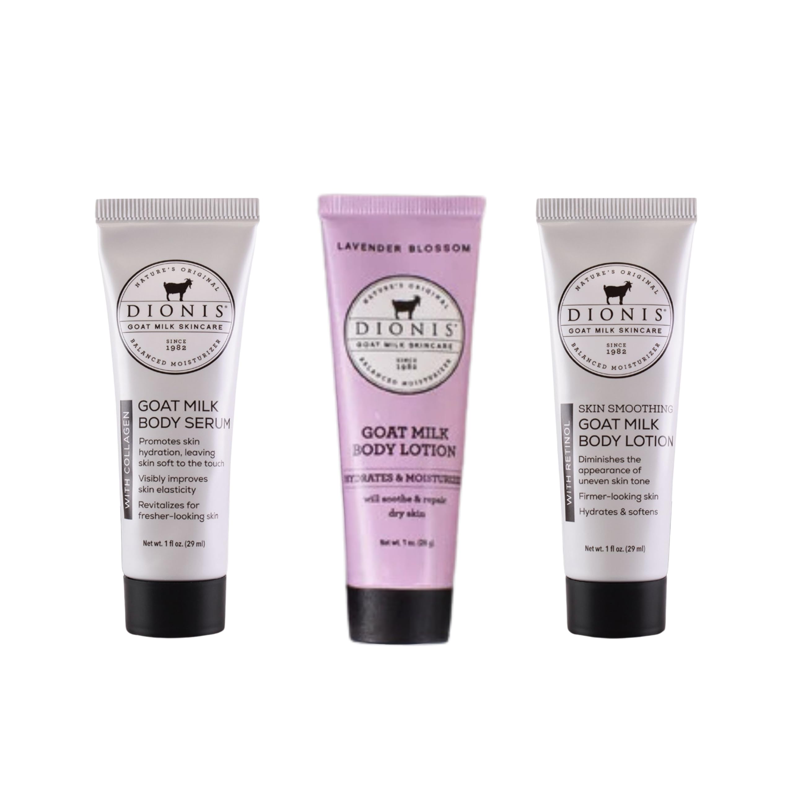 Dionis Goat Milk Skincare Body Care Set - Lavender Blossom Lotion Body Lotion W/Retinol Body Serum W/Collagen Deep Hydration and Younger Skin Lavender Blossom Lotion & Serum Set