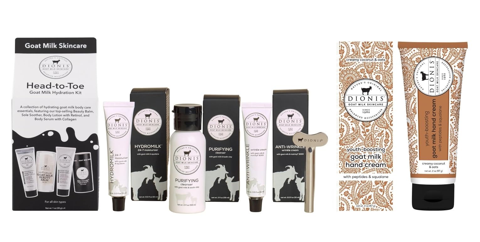 Dionis was founded in 1982 on a goat milk farm with the mission to innovate, redefine, and deliver high-quality, affordable skin care products, all made with the nourishing benefits goat milk offers empowering everyone to love the way they look feel in their skin. We're committed to using only the highest quality ingredients in our products. Our full line of goat milk skincare falls under Clean Beauty umbrella, a promise we're proud to live up to. In addition, all of our products are certified by third parties as cruelty-free and dermatologist-tested.CLEAN BEAUTY ESSENTIALS: Embrace clean beauty with our cruelty-free, paraben-free, and non-greasy lip care products. Enjoy relief for dry, chapped, and cracked lips while knowing you're treating your lips with the care they deserve. CREAMY COCONUTS OATS: A rich, creamy coconut with notes of vanilla and cooked oats is sure to comfort all of you. Generously apply to skin until well absorbed. Used daily, this rich, non-greasy formula will leave your skin feeling hydrated and silky smooth. COMPLETE GOAT MILK-INFUSED SKINCARE ROUTINE: Experience radiant, rejuvenated skin with our 3-Step Starter Kit featuring mini, travel-friendly sizes of our goat milk infused skincare essentials. Ideal for all skin types, it keeps your complexion balanced and healthy-looking. LOTION FOR DRY SKIN: Revitalize your skin with our Goat Milk Body Serums. Our Collagen lotion smooths, intensely hydrates, and enhances skin firmness. For optimal results, apply our goat milk lotion with Retinol at night avoiding the face and eye area. Caution: Perform a patch test for potential retinol-related irritation before regular use. HYDRATING MOISTURIZER: Apply a small amount of Beauty Balm to tame flyaway hair, as a lip balm, on cuticles, or to highlight cheekbones suitable for any dry spot on your body. Rub Sole Soother along cracked heels, knees, or elbows blend for complete absorption to soften and smooth. Best results with daily use.