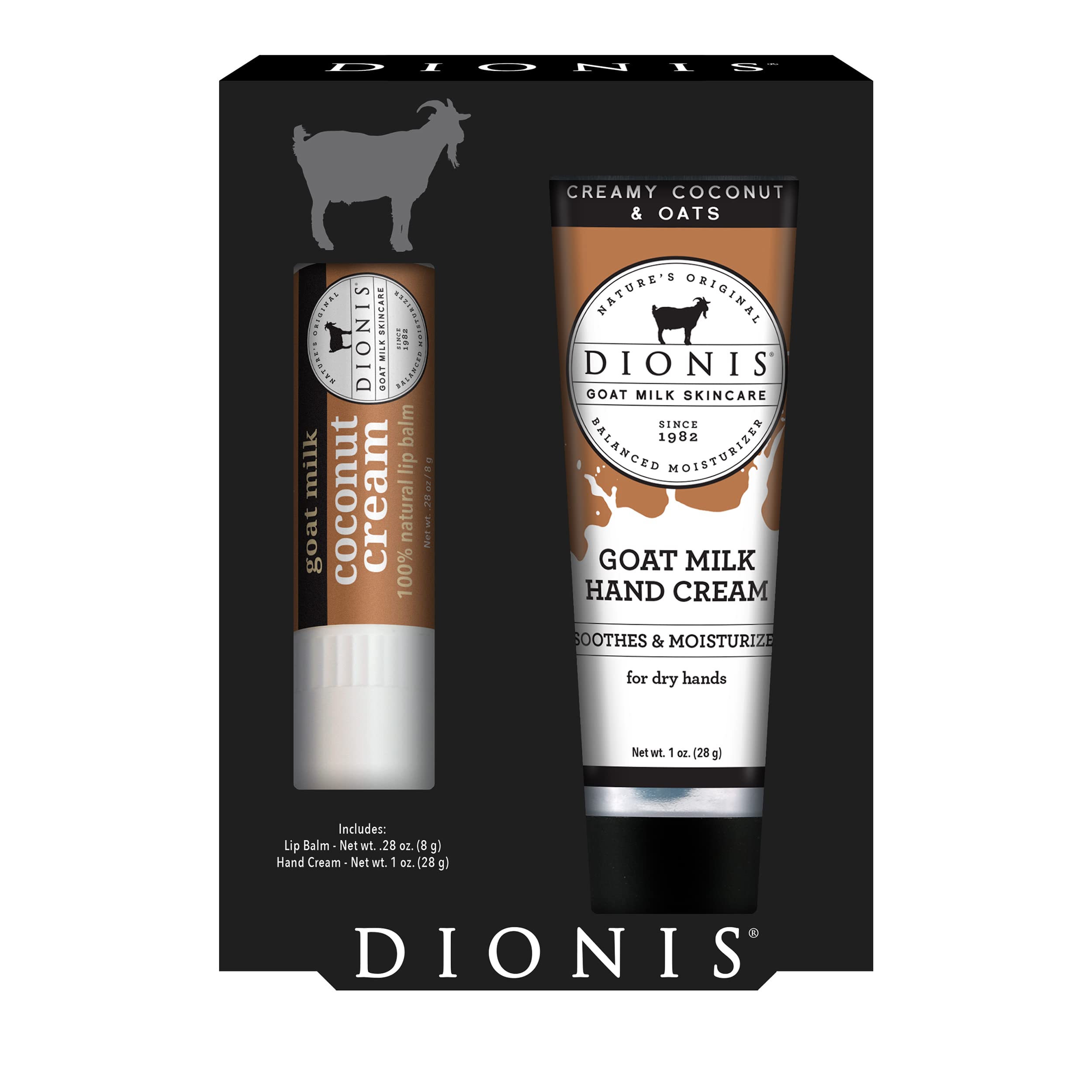 Dionis - Goat Milk Skincare Scented Hand Cream & Lip Balm Set (1 oz and .28 oz) - Made in the USA - Cruelty-free and Paraben-free (Creamy Coconut & Oats)