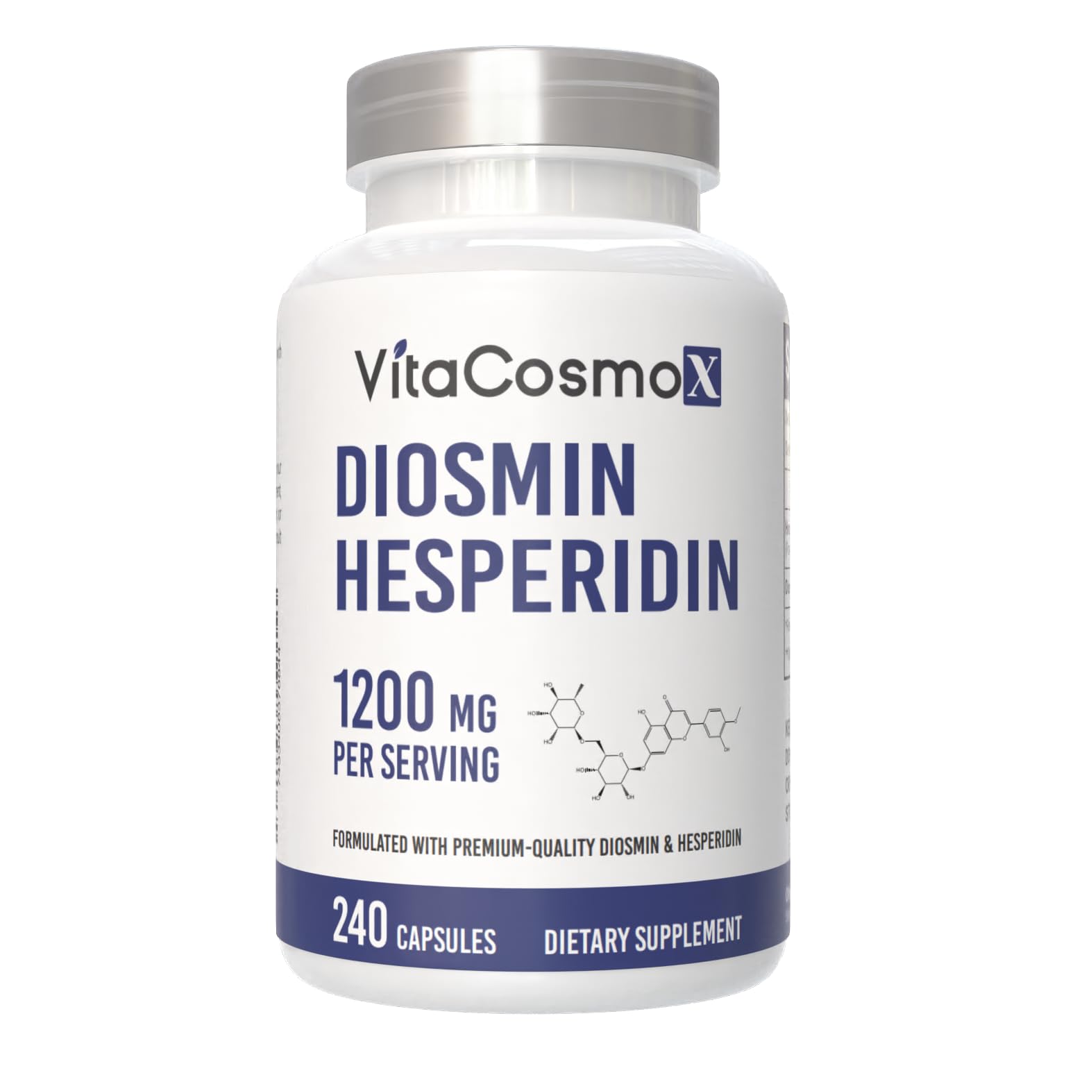 PRODUCT SPECS: 2-year shelf life, compact bottle size of 4.4 inches height by 2.3 inches diameter, containing approximately 3.2 ounces of product. QUALITY MANUFACTURING: Produced in a GMP-certified for safety and consistency. CLEAN FORMULA: Made without GMOs, gluten, soy, artificial colors, or preservatives, supporting clean-living and plant-based lifestyles. GENEROUS SUPPLY: Contains 240 capsules providing 120 daily servings, perfect for maintaining a consistent wellness routine. ADVANCED DIOSMIN COMPLEX FORMULA: Our Diosmin Hesperidin 1200 mg Capsules are expertly formulated with pure diosmin extract from Citrus Sinensis, known for its role in supporting overall well-being, including healthy legs and veins. This natural supplement is a great addition to the wellness routines of those looking to stay active and energized. Whether you're seeking diosmin capsules for circulatory health or support for overall leg comfort, this advanced formula is an excellent choice, helping you feel your best every day.