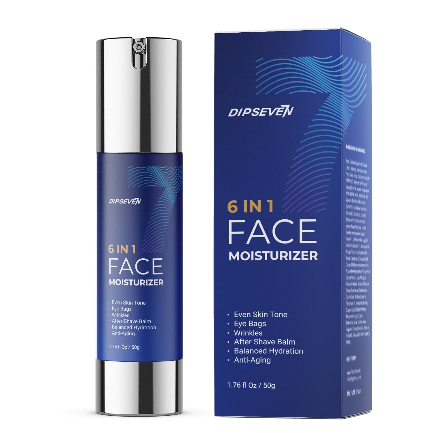 DIPSEVEN 6 in 1 Face Cream for Men: Daily Hydrating Anti Aging Moisturizer with Hyaluronic Acid & Niacinamide Helps Smooth Fine Lines