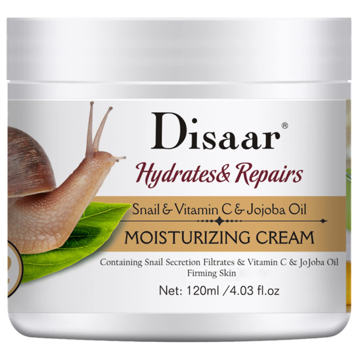 Disaar skin restoration and radiance cream has a cumulative effect of active ingredients, is designed for intensive restoration of tired skin, effective smoothing of wrinkles of all types and the return of delicate, clean and pleasant skin on the face. Vitamins included in the cream with extracts of valuable plants saturate the skin with nutrients, regenerate and nourish and stimulate the synthesis of collagen in cells. The rejuvenating regenerating cream has a delicate light texture and is quickly absorbed by the skin. Deeply moisturizes, eliminates dryness and peeling, has a soothing effect on irritated skin areas. Neutralizes toxins, helps to smooth wrinkles and strengthen the skin. Protects the skin from aggressive environmental influences and premature aging. Protect and lubricates the skin keeping it moist delicate. Suitable for face, neck, arms, legs other part of the body. Snail Mucin moisturizes skin, promotes collagen production, aids in skin regeneration The Vitamin E and B-complex vitamins in the Jojoba Oil help in skin repair and damage control Vitamin C is an antioxidant, meaning it protects skin cells from damaging free radicals caused by UV exposure.The Vitamin E and B-complex vitamins in the Jojoba Oil help in skin repair and damage control. Protect and lubricates the skin keeping it moist delicate. Suitable for face, neck, arms, legs other part of the body. Snail Mucin moisturizes skin, promotes collagen production, aids in skin regeneration. The rejuvenating regenerating cream has a delicate light texture and is quickly absorbed by the skin. Deeply moisturizes, eliminates dryness and peeling, has a soothing effect on irritated skin areas. Neutralizes toxins, helps to smooth wrinkles and strengthen the skin. Protects the skin from aggressive environmental influences and premature aging. Vitamins included in the cream with extracts of valuable plants saturate the skin with nutrients, regenerate and nourish and stimulate the synthesis of collagen in cells. Disaar skin restoration and radiance cream has a cumulative effect of active ingredients, is designed for intensive restoration of tired skin, effective smoothing of wrinkles of all types and the return of delicate, clean and pleasant skin on the face.