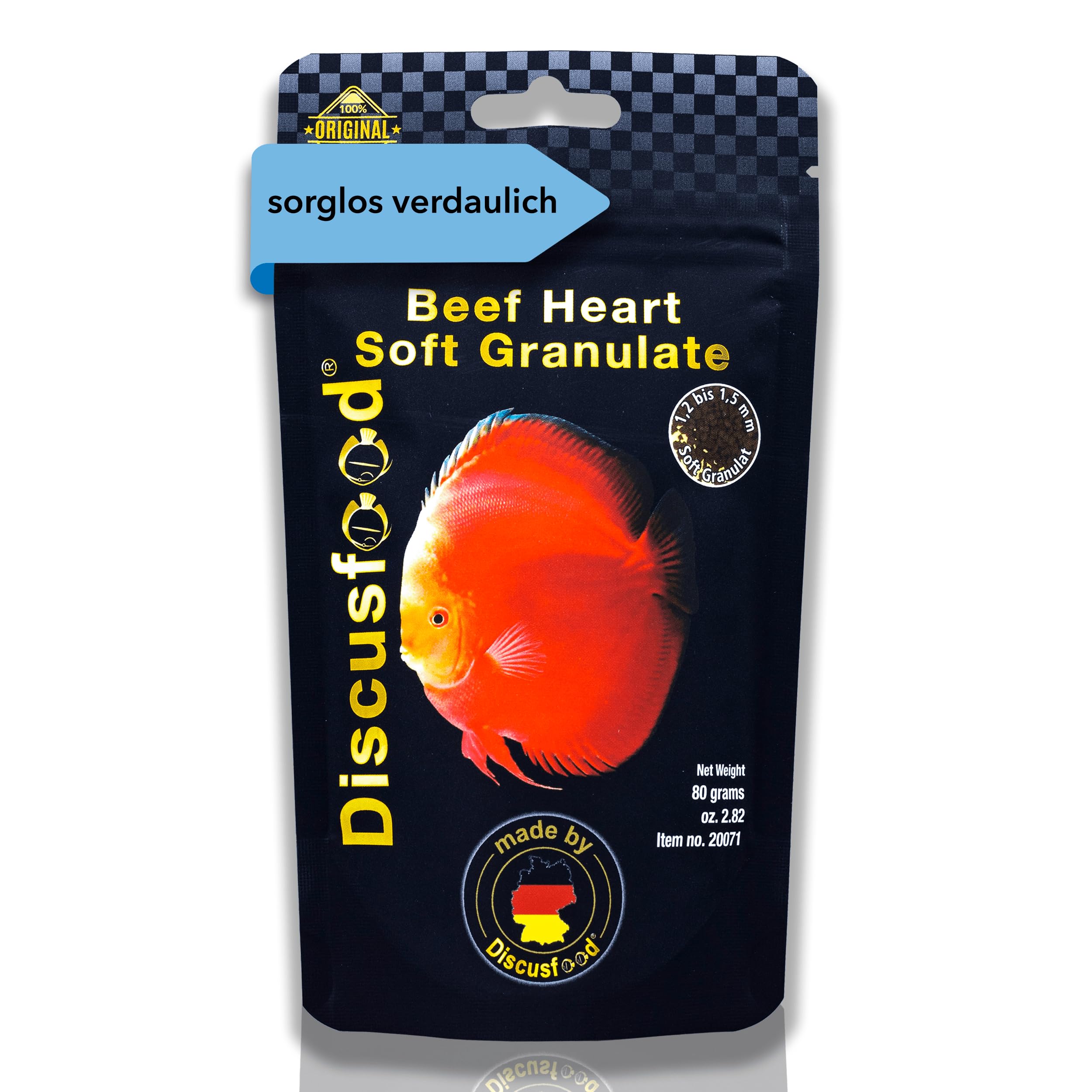 The pellet size is approximately 1.8 mm and is suitable for young and adult discus fish. 100 designed and produced in Germany. Contains the finest calf heart. Special care is taken in the preparation of the product. Contains no connective tissue or fat. Beef Heart Soft pellets are characterized by a soft granular structure, which is immediately well accepted by the majority of discus fish and their stomachs do not swell. The relatively high protein content (57 ) and the addition of vitamins and minerals ensure the rapid and balanced development of discus fish.La taille des granulés est d'environ 1,8 mm et est adaptée aux poissons-disques jeunes et adultes. 100 conçu et produit en Allemagne. Contient le meilleur cœur de veau. Un soin particulier est apporté à la préparation du produit.Ne contient pas de tissu conjonctif ni de graisse. Les granulés de Beef Heart Soft sont caractérisés par une structure granulaire molle, qui est immédiatement bien acceptée par la majorité des poissons-disques et leur estomac ne gonfle pas. Le contenu relativement élevé de protéines (57 ) et l'ajout de vitamines et minéraux assurent un développement rapide et équilibré des poissons-disques.