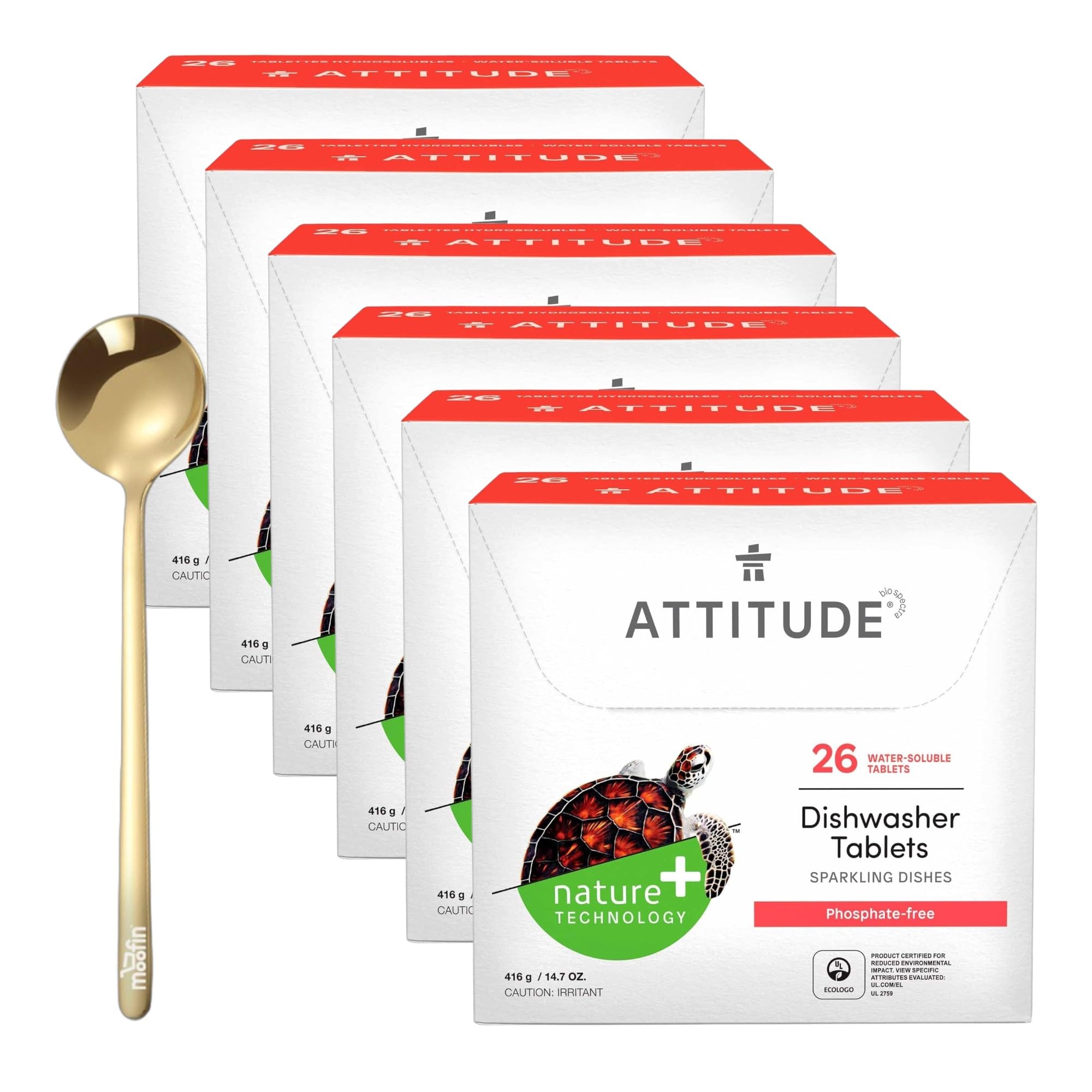 Dishwasher Pods High-Efficiency Non-Toxic Cleaning Tablets Unscented Anti-Limescale Protection Unscented Dishwasher Pods with Moofin Golden SS Spoon-6 Vegan Water-Soluble Film Pack of 6