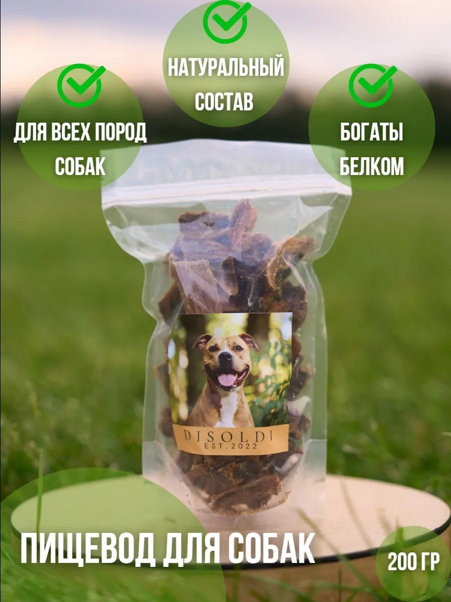 Удобная упаковка 200 гр: Достаточный объем для регулярного поощрения. Упаковка надежно защищает лакомство, сохраняя его свежесть и натуральный мясной аромат, который так любят собаки.