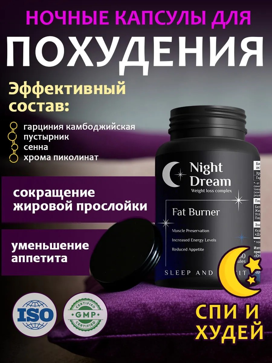 Мечтаете о стройной фигуре без жестких диет и изнурительных тренировок? Ночной жиросжигатель – это инновационная формула для эффективного и безопасного похудения, которая работает даже во время вашего отдыха! Наши капсулы для похудения созданы на основе мощных натуральных компонентов: пиколината хрома, гарцинии камбоджийской, листа сенны и уникального травяного комплекса. Этот состав подобран таким образом, чтобы максимально ускорить метаболизм, подавить аппетит и запустить активное сжигание жира во время сна.
