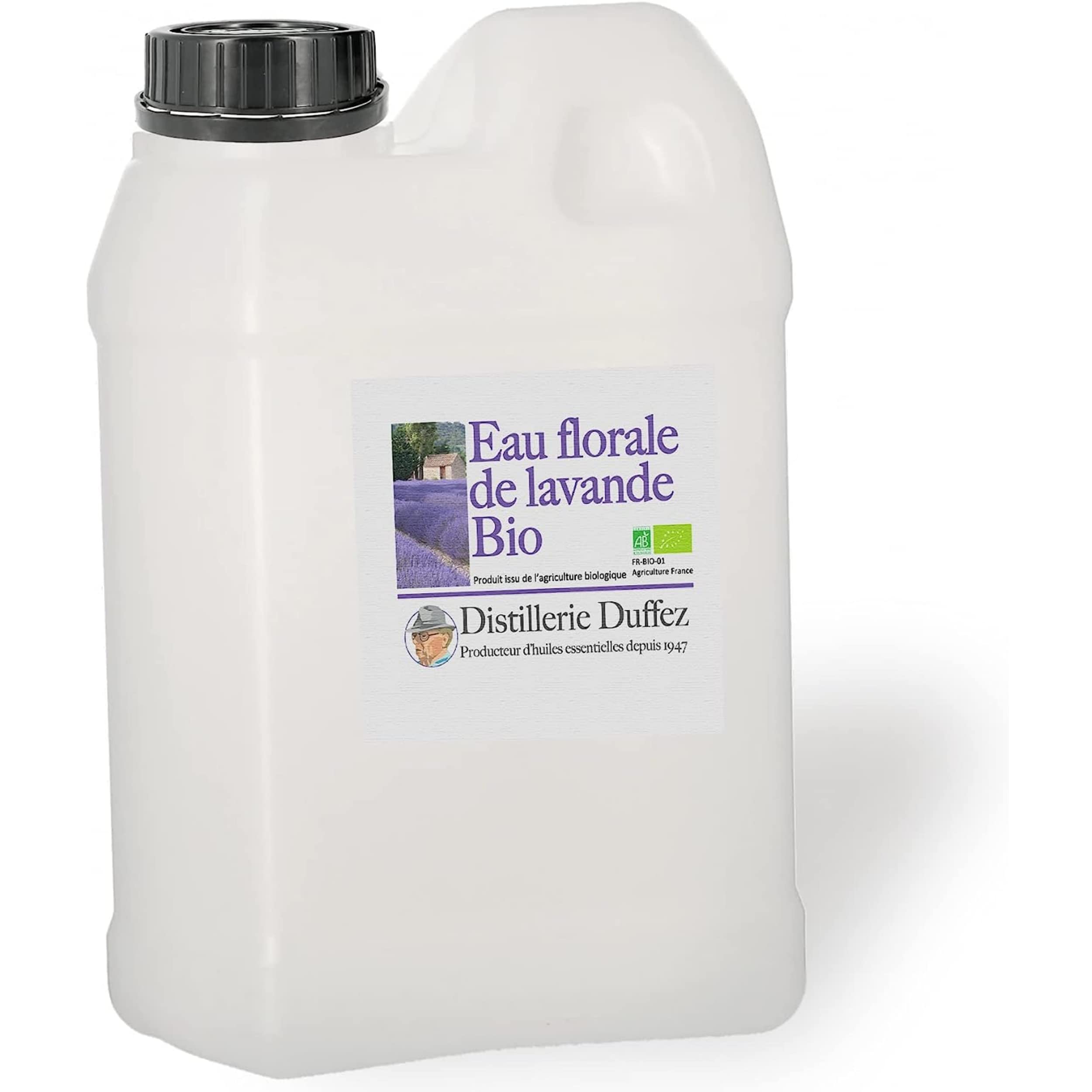 Lavender floral water, also called "lavender hydrosol," is obtained through the distillation of lavender flowers. ? After the lavender is distilled—that is, the essential oils are extracted using steam—the floral water, also called "hydrosol," is collected. Lavender hydrosol can be beneficial for people with oily skin or acne due to its antiseptic and anti-inflammatory properties. It can help regulate sebum production, which can reduce pimples and blackheads. Furthermore, it can soothe redness and irritation associated with acne. It is strongly recommended to consult a dermatologist or healthcare professional before using any new product to treat acne or other skin problems. Please note that, as this is a natural product, the hydrosol has a slightly distinctive herbal grassy and honey-like scent, and a slight sediment may be present. The scent is very different from the pure essential oil we're used to smelling Essential oil is obtained by steam distillation of the plant parts, while hydrosol is a byproduct of this distillation. Therefore, light floral water contains only a small amount of essential oils, unlike essential oil. Consequently, it's normal that hydrosol doesn't smell anything like lavender essential oil. Ingredient: 100 Lavandula Angustifolia Floral Water 100 Lavender Flower Water Hydrolate Made in France - HY from Organic Farming Hydrolate from organic agriculture certified Packaging: 1 Liter Bottle 2 Liter Bottle 5 Liter Bottle or 250 ml Bottle Cap Pack of 2 x 250 ml bottles spray bottle and cap. INSTRUCTIONS FOR USE Use this lavender floral water for skin and hair care, applying it topically with a cotton ball. Shake well before use. SAFETY WARNING It is recommended to consult a healthcare professional before use. May cause skin irritation. See moreStorage: As the hydrosols from our distillery are fresh and pure products, without preservatives, we strongly advise you to store them in the refrigerator and use them within 6 months of opening. Because it is a natural product, the hydrosol has a light, distinctive scent of plants grass and honey a slight sediment may be present. The scent is very different from that of essential oils. . Properties Uses: Purifying Soothing Refreshing Calming Healing Reduces redness Tightens pores Fights acne Eliminates excess sebum Recommended for oily skin Reduces blackheads Combats oily hair Aftershave Ironing. Aromatherapy: A naturally refreshing and soothing lotion, this hydrosol is used to prepare treatments for delicate, tight, or uncomfortable skin. Astringent and purifying, it's an ideal ingredient for making your own skin and hair care products. It also soothes burns and sunburns . Quality: 100 Pure and Natural Raw Organic Lavender Floral Water - NO preservatives, NO perfumes Origin: France, Drôme (26) Obtained by Steam Distillation Botanical name: Lavandula angustifolia (common lavender) Certified Organic by ECOCERT FR-BIO-01 - Traceability to the distiller producer. Direct from Producer: Floral water hydrosol of true Fine Lavender officinalis, from our production, made in France in the heart of the Drôme Provençale (26) in our family Distillery since 1947.Eau florale de Lavande Bio 5 Litres - Hydrolat 100 Pur et Naturel - Direct producteur en Drôme Provençale - Distillerie DuffezDESCRIPTION DU PRODUIT DESCRIPTION DU PRODUIT L'eau florale de lavande, aussi appelée "Hydrolat de lavande" est issue de la distillation des fleurs de lavande. ? Après distillation de la lavande, c'est à dire, l'extraction des huiles essentielles par la vapeur d'eau, on récupère aussi l'eau floraleégalement appelée "hydrolat". L'hydrolat de lavande peut être bénéfique pour les personnes ayant une peau grasse ou souffrant d'acné en raison de ses propriétés antiseptiques et anti-inflammatoires. Il peut aider à réguler la production de sébum, ce qui peut réduire les boutons et les points noirs. En outre, il peut apaiser les rougeurs et les irritations associées à l'acné. Il est vivement recommandé de consulter un dermatologue ou un professionnel de la santé avant d'utiliser tout nouveau produit pour traiter l'acné ou les problèmes de peau. Attention, comme il s'agit d'un produit naturel, l'hydrolatdégage une légère odeur particulière de plante herbe et de miel, un léger dépôt peut est être présent. L'odeur est très différente de l'huile essentielle pure que l'on a l'habitude de sentir L'huile essentielle est obtenue par distillation à la vapeur d'eau des parties végétales de la plante, tandis que l'hydrolat est le sous-produit de cette distillation. L'eau floralelégère contient donc qu'une petite quantité d'huiles essentielles, contrairement à l'huile essentielle. Par conséquent, il est normal que l'hydrolat ne sente pas du tout comme l'huile essentielle de lavande. Ingrédient : 100 Eau florale de Lavandula Angustifolia 100 Lavender Flower Water Hydrolate Made in France - HY issu de l'Agriculture Biologique Hydrolate from organic agriculture certified Conditionnement : Bidon (1 Litre) Bidon (2 Litres) Bidon (5 Litres) ou en bouteille 250 ml bouchon pack 2x250 ml vaporisateur spray et capuchon. MODE D'EMPLOI Utilisez cette eau florale de lavande pour les soins de la peau et des cheveux, en l'appliquant localement avec un coton de coton. Bien agiter avant utilisation. AVERTISSEMENT DE SÉCURITÉ Il est recommandé de consulter un professionnel de santé avant utilisation et peut provoquer une irritation de la peau. Voir plusConservation : Les hydrolats de notre distillerie étant des produits frais et purs, sans conservateurs, nous vous conseillons vivement de les stocker au réfrigérateur et de les utiliser dans les 6 mois après ouverture. Comme il s'agit d'un produit naturel, l'hydrolat dégage une légère odeur particulière de plante herbe et de miel, un léger dépôt peu est être présent. L'odeur est très différente de celle que l'on a l'habitude avec l'huile essentielle. . Propriété utilisation 