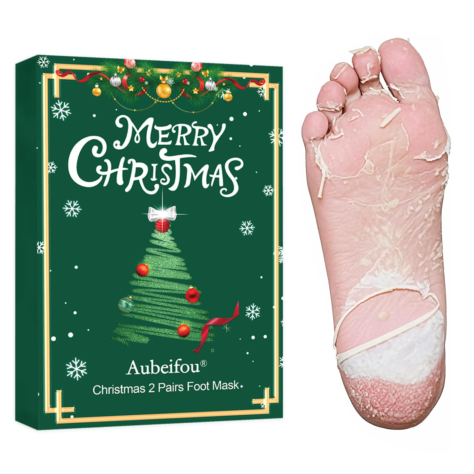 Édition Noël 2 paires Aloe Vera Masques Pieds Exfoliants, Kit Noël Soin Pieds, Masque Pieds Peeling Exfoliant, Hydrater la peau pour une Peau Plus Douce