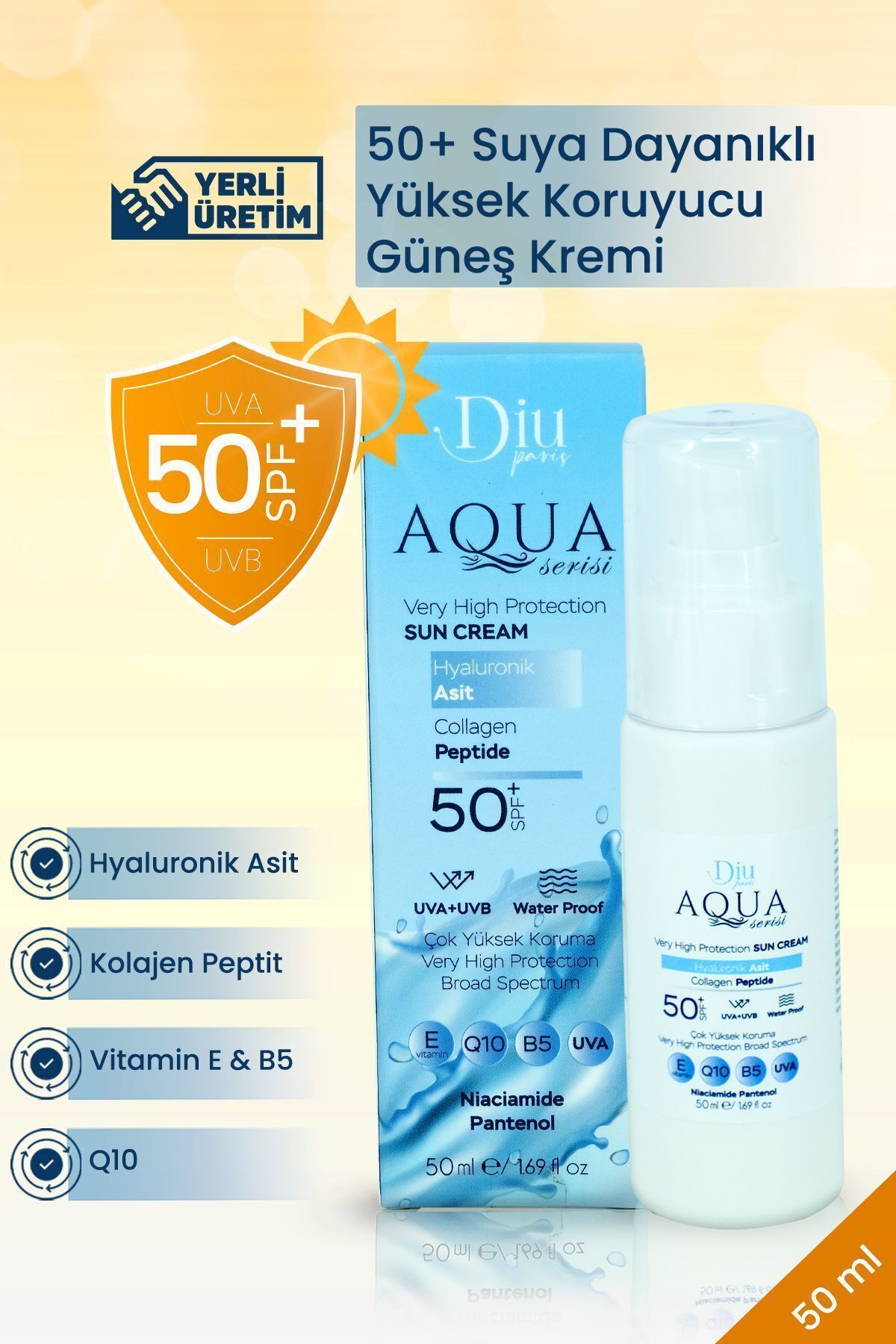 Diu Paris Aqua Spf 50 Sun Cream Anti-Aging Waterproof Uva Uvb Q10 Makeup Base 50 ml