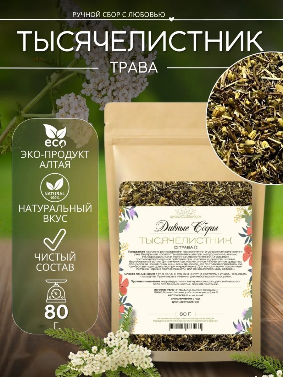 | Комплектация | тысячелистник трава сушеная 80гр- 1 упаковка |