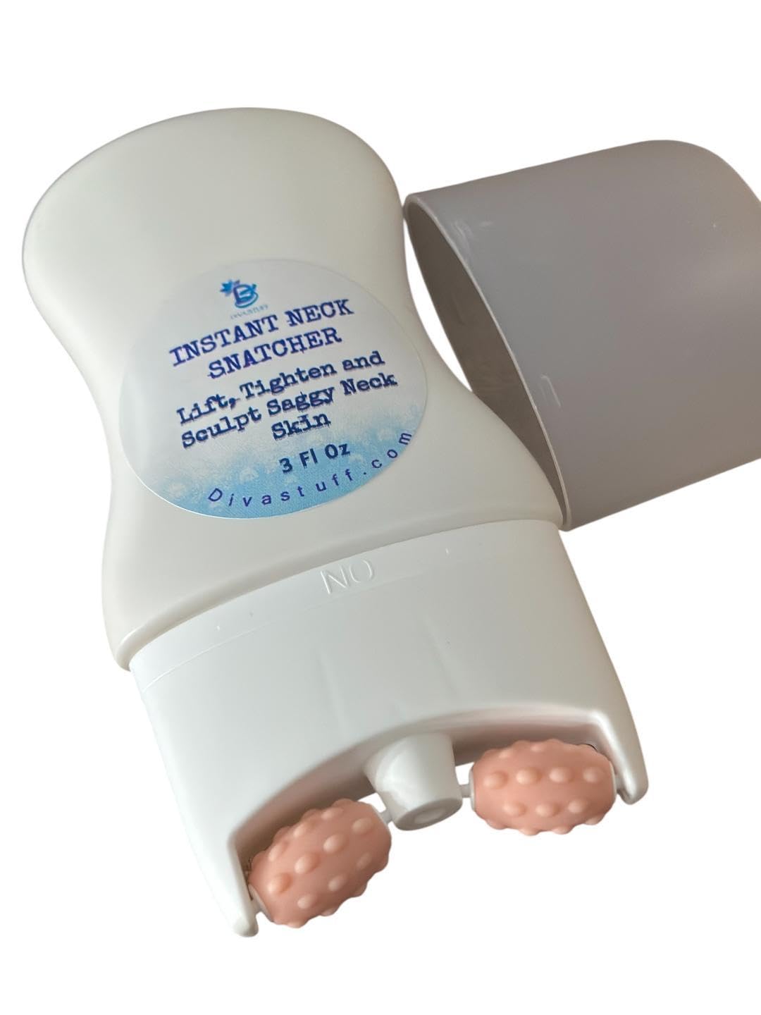Instant Neck Snatcher By Diva Stuff is made with ingredients that help lift and tighten saggy loose skin instantly. It contains ingredients such as vitamin c, retinol, salmon pdrn, lemon bioferment, hyaluronic acid, strawberry butter, fision insta lift and so much more. It comes in the coolest container that has massage rollers to help rub the cream into your neck. The cream dispenses through the center of the container and the massage rollers are on either side. You may also leave it turned off and use the rollers alone for a lymphatic drainage tool or with another cream. The container holds 100ml of product and is very easy to dispense and use. This product is great for maturing skin and those who have lost a lot of weight and have loose skin under their neck.