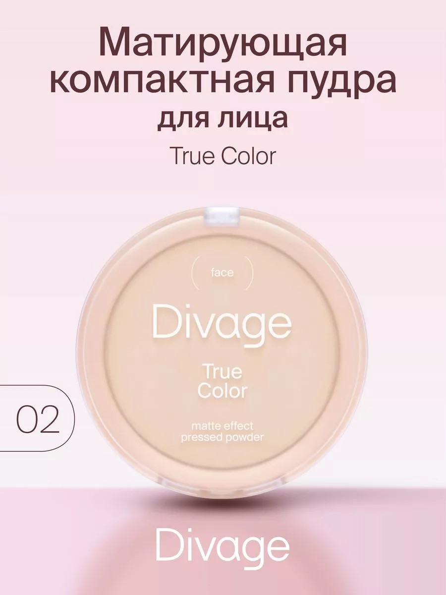 Устойчивая матирующая пудра для лица True Color с шелковистой текстурой покрывает кожу легкой вуалью. Пудра конпактная прекрасно скрывает мелкие несовершенства кожи и делает лицо ухоженным. Обладает естественным матовым финишем. Идеально подходит для создания естественного свежего макияжа. Советы от Divage раскроют для вас все грани этого продукта. Используй ее не только для придания матовости коже лица, но и для завершения макияжа. Нанесение пудры последним этапом продлевает стойкость макияжа. Перед нанесением, промокните Т зону с помощью салфетки. Это поможет избежать «эффекта маски», а пудра ляжет легкой бархатистой вуалью. В линейке представлено пять оттенков. Тон 01 Fair – самый светлый нейтральный тон. Подойдет даже девушкам с очень светлой кожей. Тон 02 Ivory – светлый тон, с легким оттенком «слоновой кости». Подойдет всем девушкам чья кожа от светлого до среднего тона. Тон 03 Beige – средний нейтральный тон с натуральным бежево-желтоватым подтоном. Подойдет обладательницам кожи от светлого до среднего тона. Тон 04 Sand – оттенок пудры с средним (песочным) теплым подтоном. Оттенок подойдет обладательницам среднего тона кожи , теплого подтона, или светлокожим девушкам после легкого загара. 05 Honey – теплый «медовый» оттенок придающий лицу легкий тон загара, подойдет для тех кто хочет усилить или поддержать эффект загара, а так же смуглым девушкам.