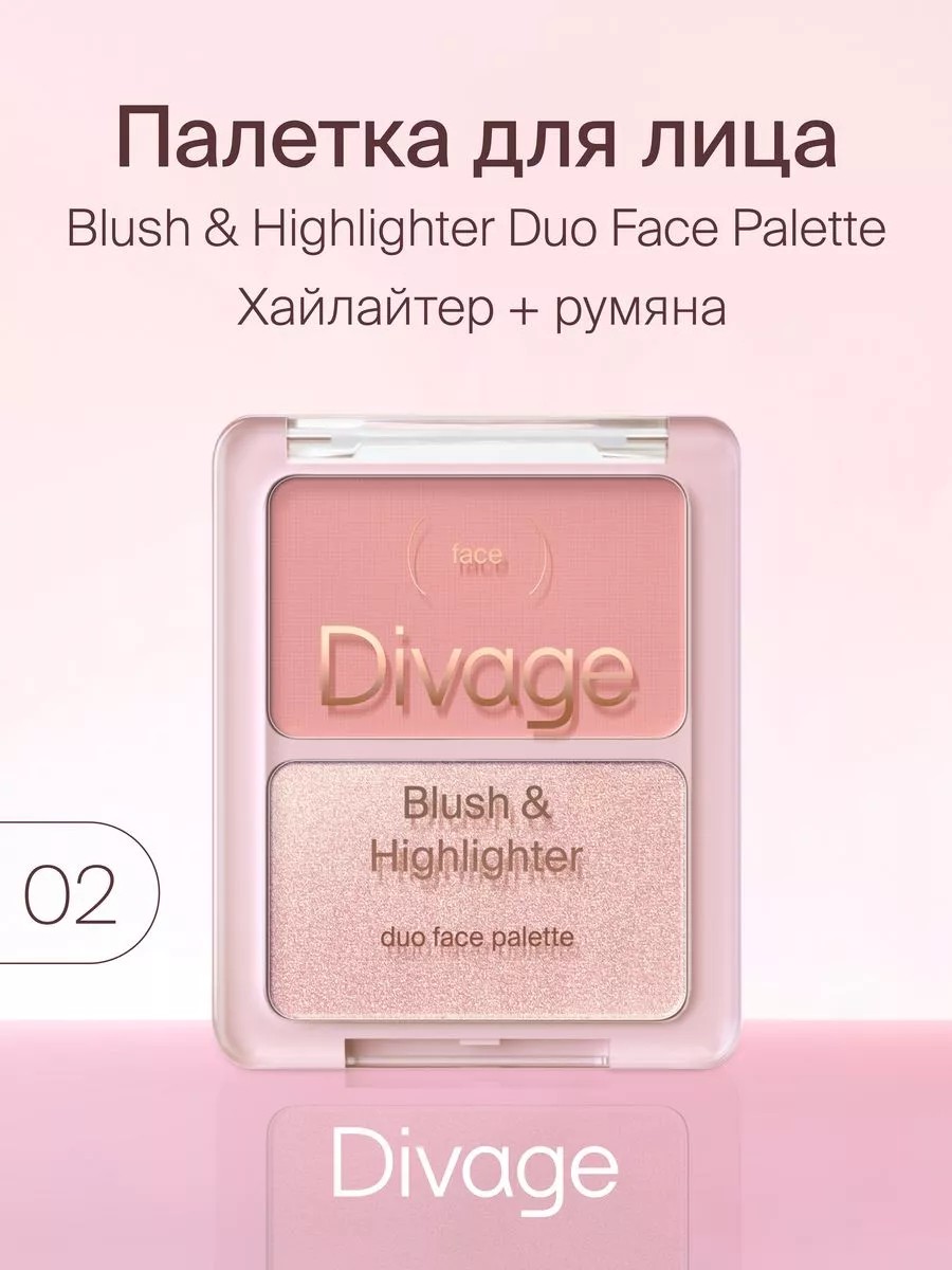 DIVAGE Палетка для лица Duo: румяна + хайлайтер, тон 02