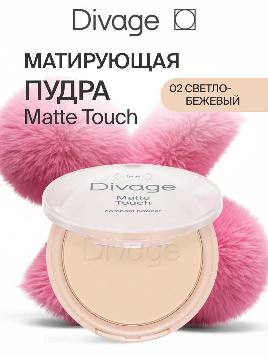The compact Matte Touch face powder from the Divage decorative cosmetics brand in a light beige shade will ensure smooth, flawless skin and perfect makeup!