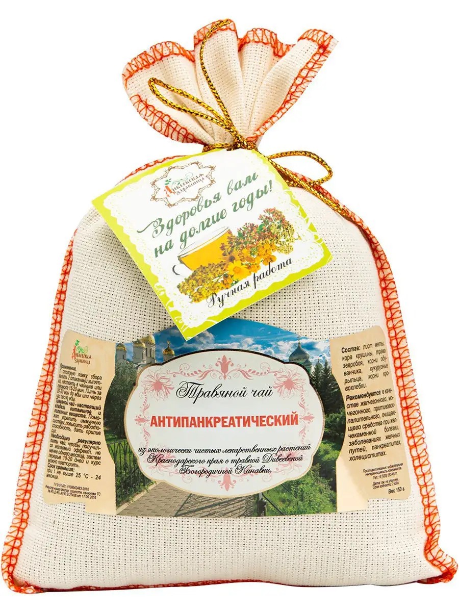 | Package contents | Herbal tea in linen bags "Antipancreatic" from Diveevo, 150 g - 1 piece |