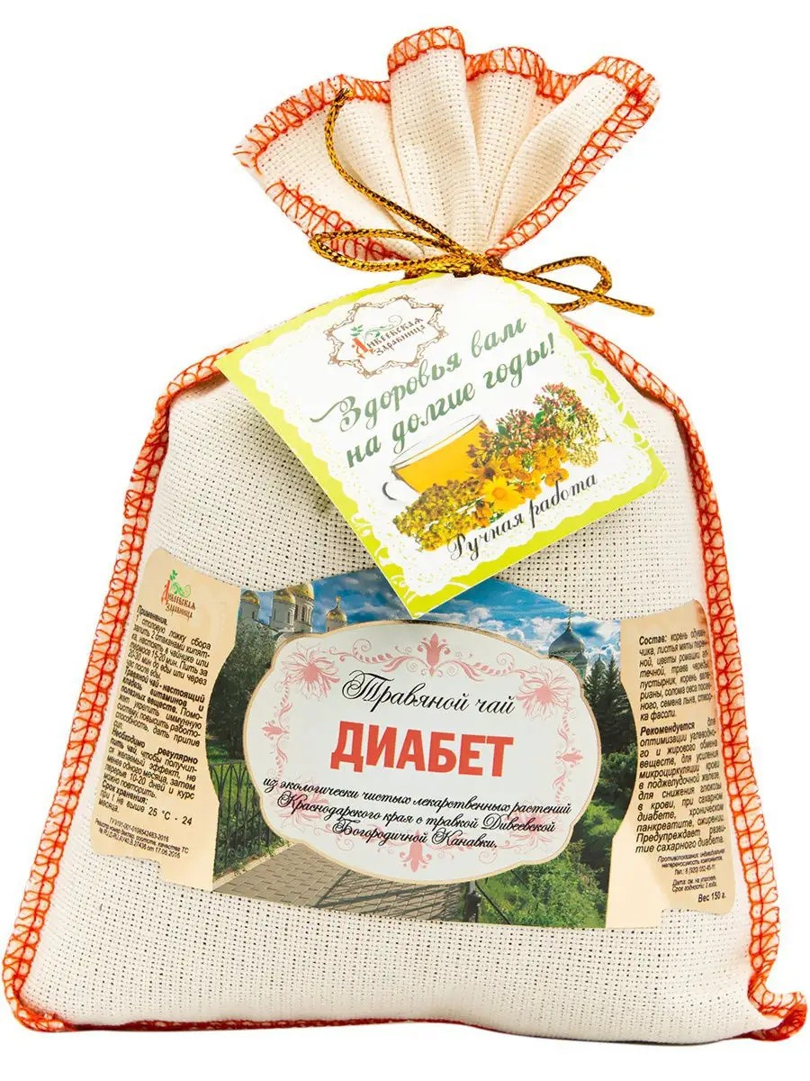 | Особенности продукта | подарочная упаковка льняной мешочек; чайный сбор от диабета по старинному рецепту; Травяной чай сбор от диабета |