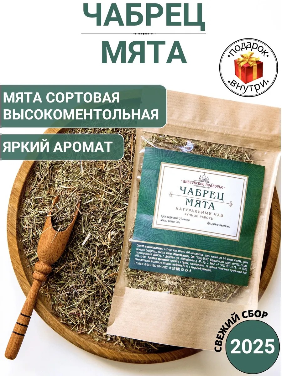 | Комплектация | Упаковка Чабреца - Мяты 70г - 1 шт; Подарочный пакетик чая в ассортименте - 1 шт |