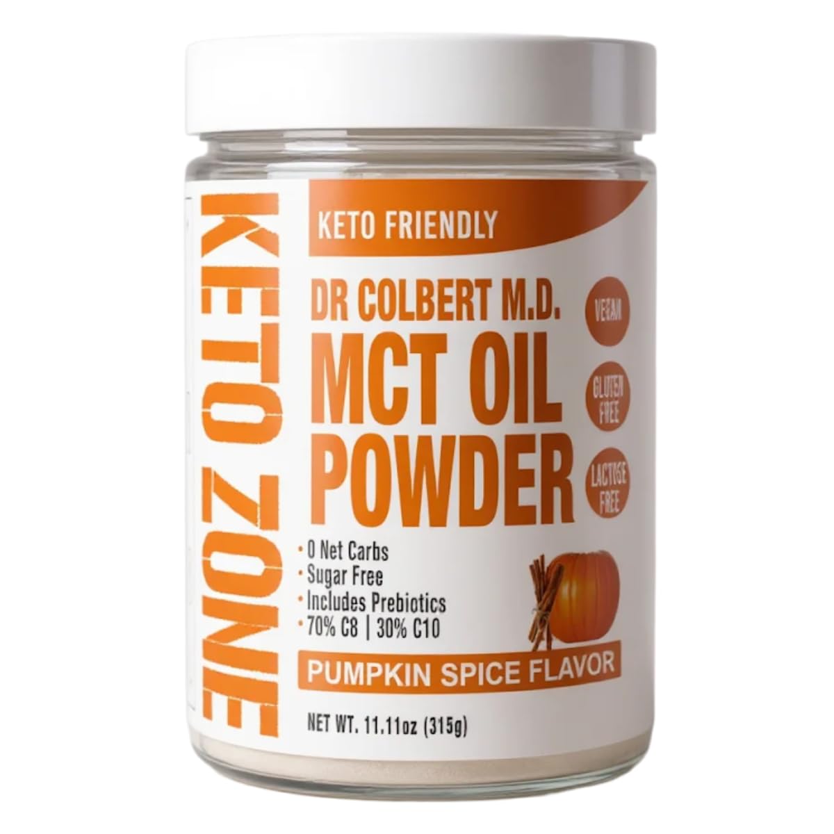 Divine Health Dr. Colbert MD MCT Oil Powder | Pumpkin Spice Flavor Keto Zone | 70% C8 30% C10 | 0 Net Carbs | Gluten Free | 30 Day Supply | 300 Grams