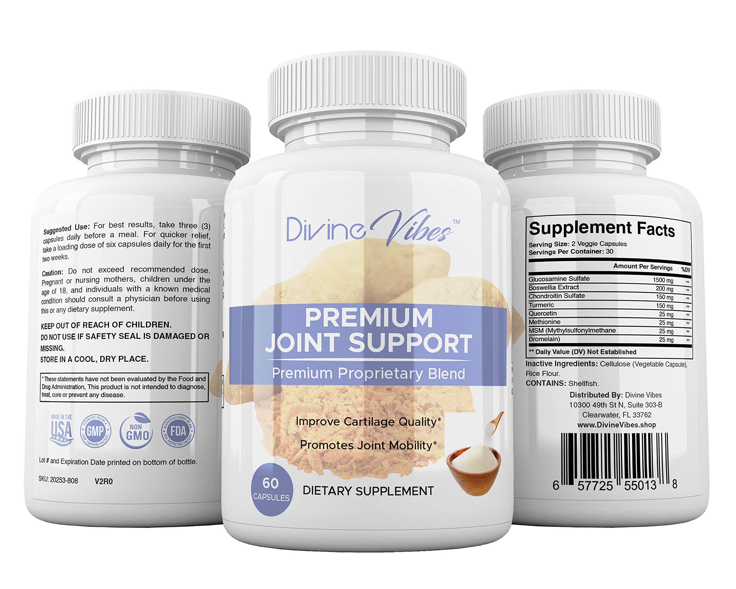 Divine Vibes Glucosamine Chondroitin Turmeric MSM Boswellia - Joint Supplement 60 Tablets