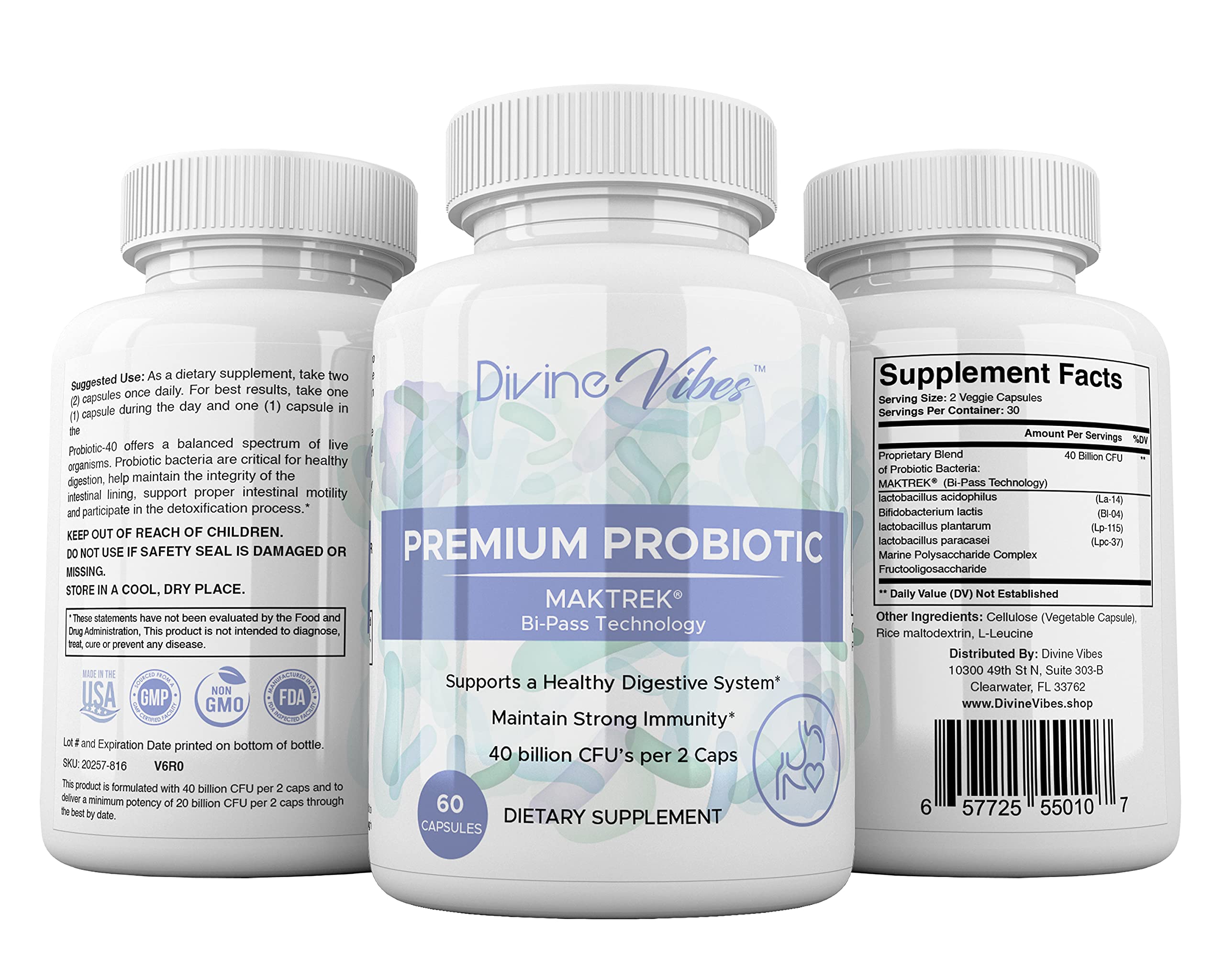 Divine Vibes Probiotics 40 Billion CFU - Approved Probiotics for Women Probiotics for Men and Adults Natural Shelf Stable Probiotic Supplement with Prebiotic Acidophilus Probiotic 60 Capsules