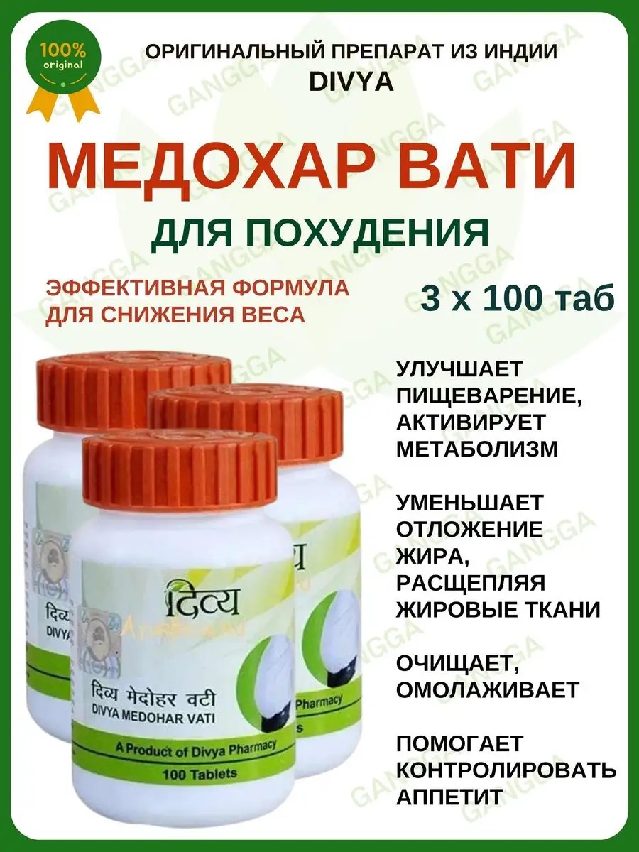 Divya Медохар Вати, Medohar Vati, для похудения, Дивья, 3х100 таб