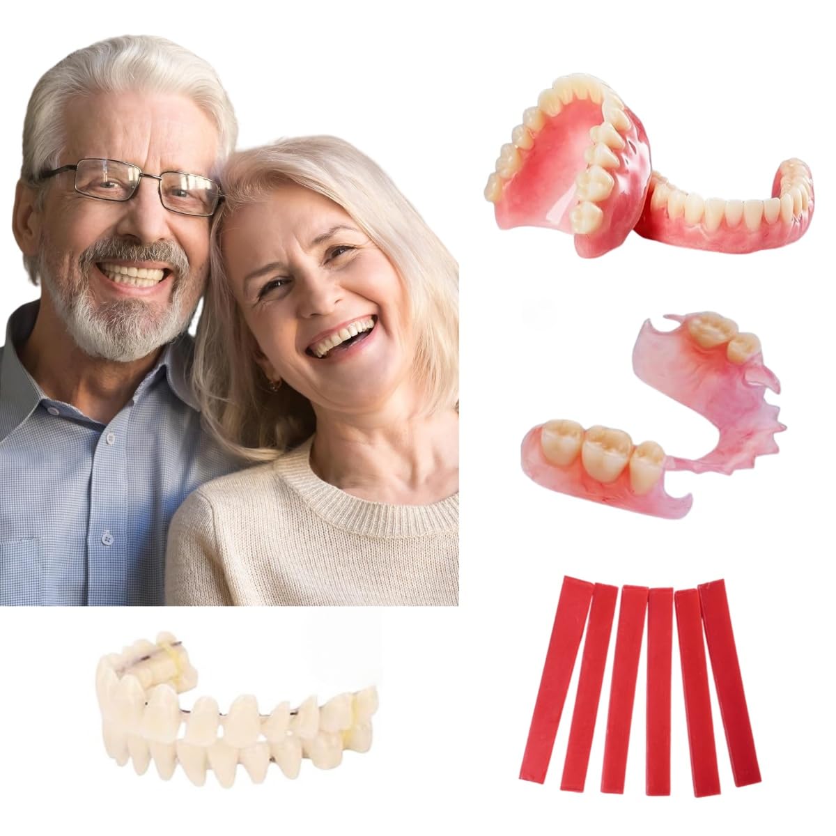 DIY Denture Kit - Top & Bottom Fake Teeth with Comfort Fit for Everyday Use Natural-Looking Emergency Replacement Solution