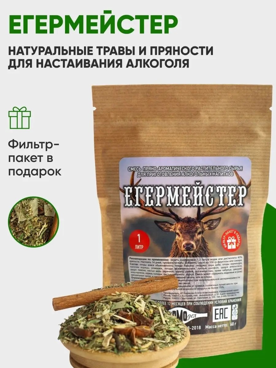 А еще, этот набор из трав и специй для настоек от компании САМОдел с Егермейстером - это идеальный подарок не только для самогонщика, но и для охотника, рыбака, дачника, а также для всех мужчин и женщин, которые ценят вкусный и качественный алкогольный напиток.