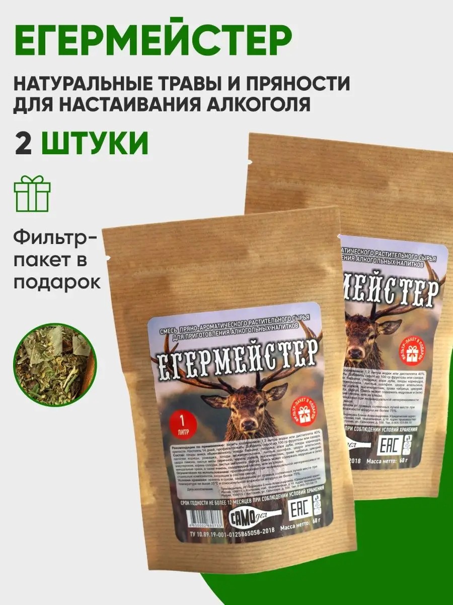 А еще, этот набор из трав и специй для настоек от компании САМОдел с Егермейстером - это идеальный подарок не только для самогонщика, но и для охотника, рыбака, дачника, а также для всех мужчин и женщин, которые ценят вкусный и качественный алкогольный напиток.