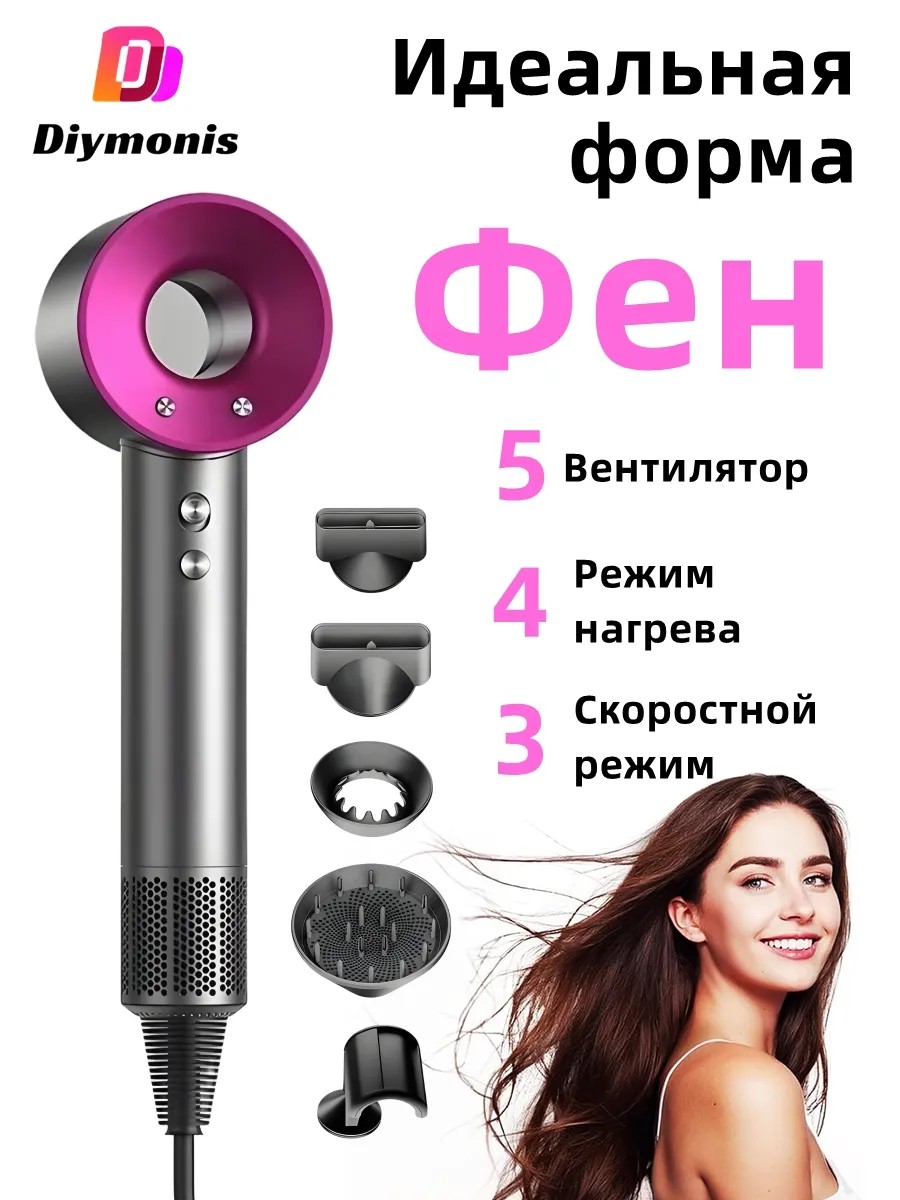 2.Фен сочетает в себе функции сушки и укладочного устройства, что делает его идеальным для создания разнообразных причесок. Благодаря магнитной насадке, вы сможете легко менять аксессуары и адаптировать прибор под свои нужды. Современные технологие фена обеспечивают защиту волос, восстановление и заботу о каждом локоне, что особенно важно для кудрявых и коротких причесок.