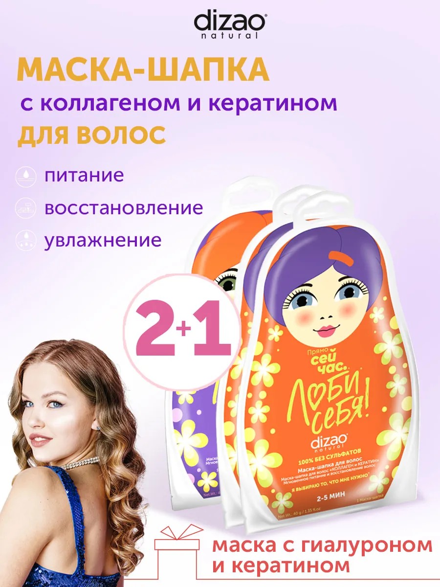 Dizao Маска для волос с кератином и коллагеном 2шт