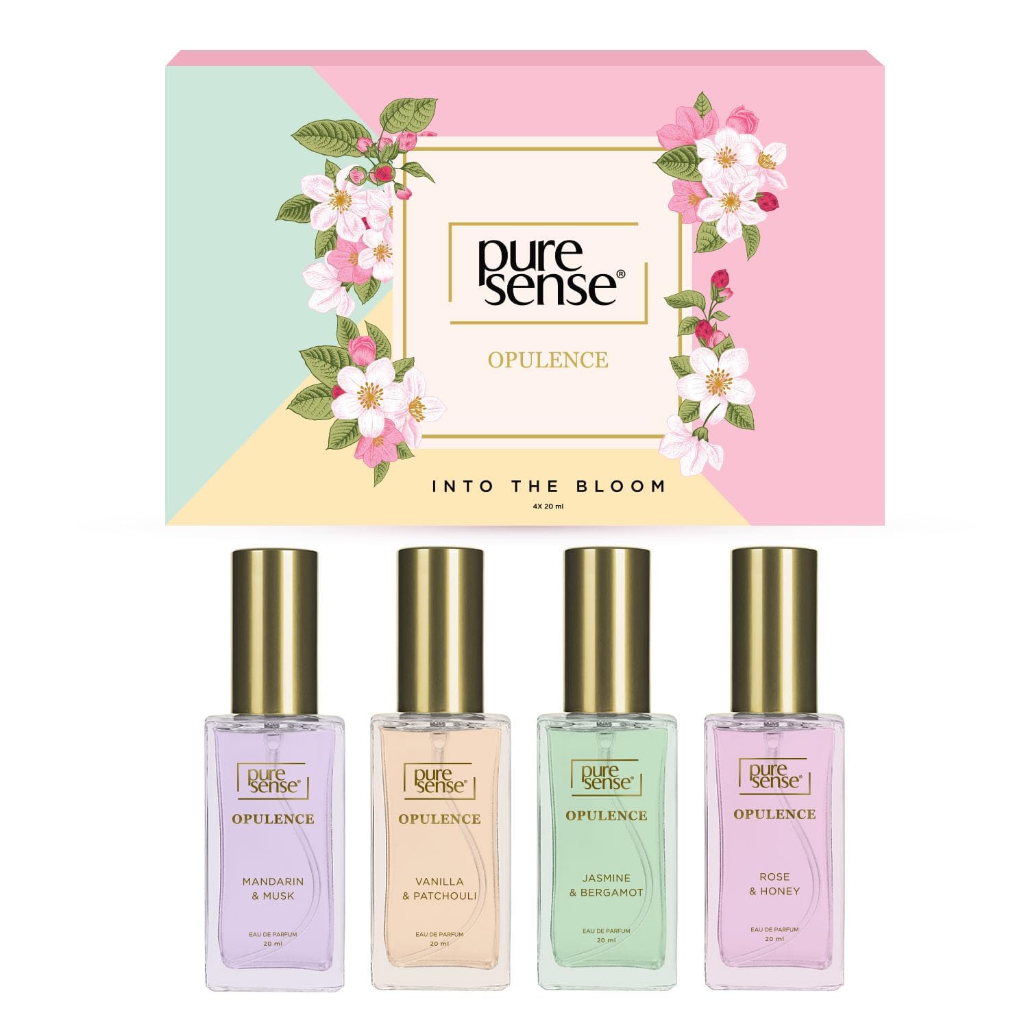 DJ Pure-Sense Into the Bloom Perfume (Vanilla + Mandarin + Jasmine + Rose) Long Lasting Women's Fragrance Gift Set (4x20ml) 80ml