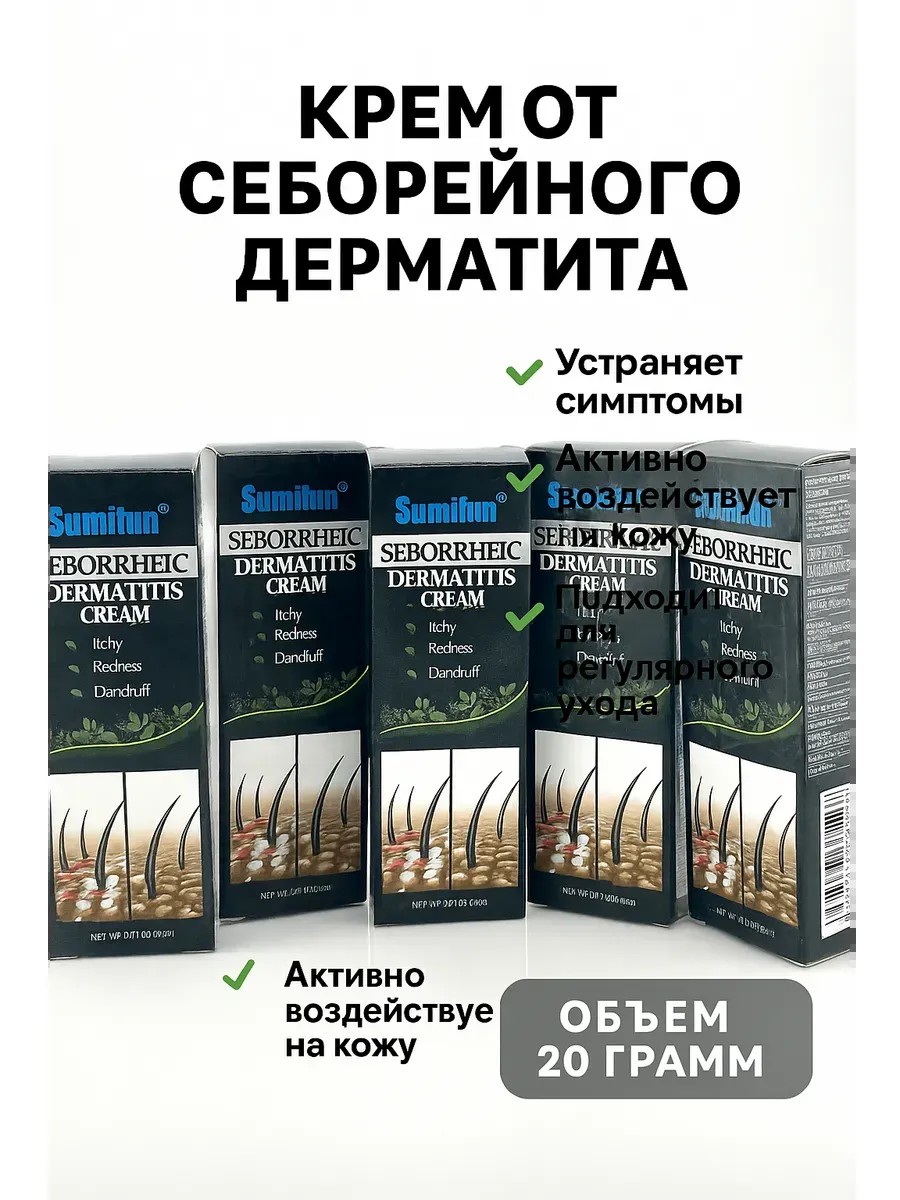 Крем от себорейного дерматита Sumifun эффективно устраняет зуд покраснение и шелушение кожи головы и лица помогает избавиться от перхоти борется с раздражением и воспалением нормализует состояние кожи при дерматологических проблемах средство подходит для ежедневного использования быстро впитывается и не оставляет жирных следов рекомендуется при себорее дерматите экземе и чувствительной коже обладает противовоспалительным и антисептическим действием способствует восстановлению кожи и снятию неприятных ощущений
