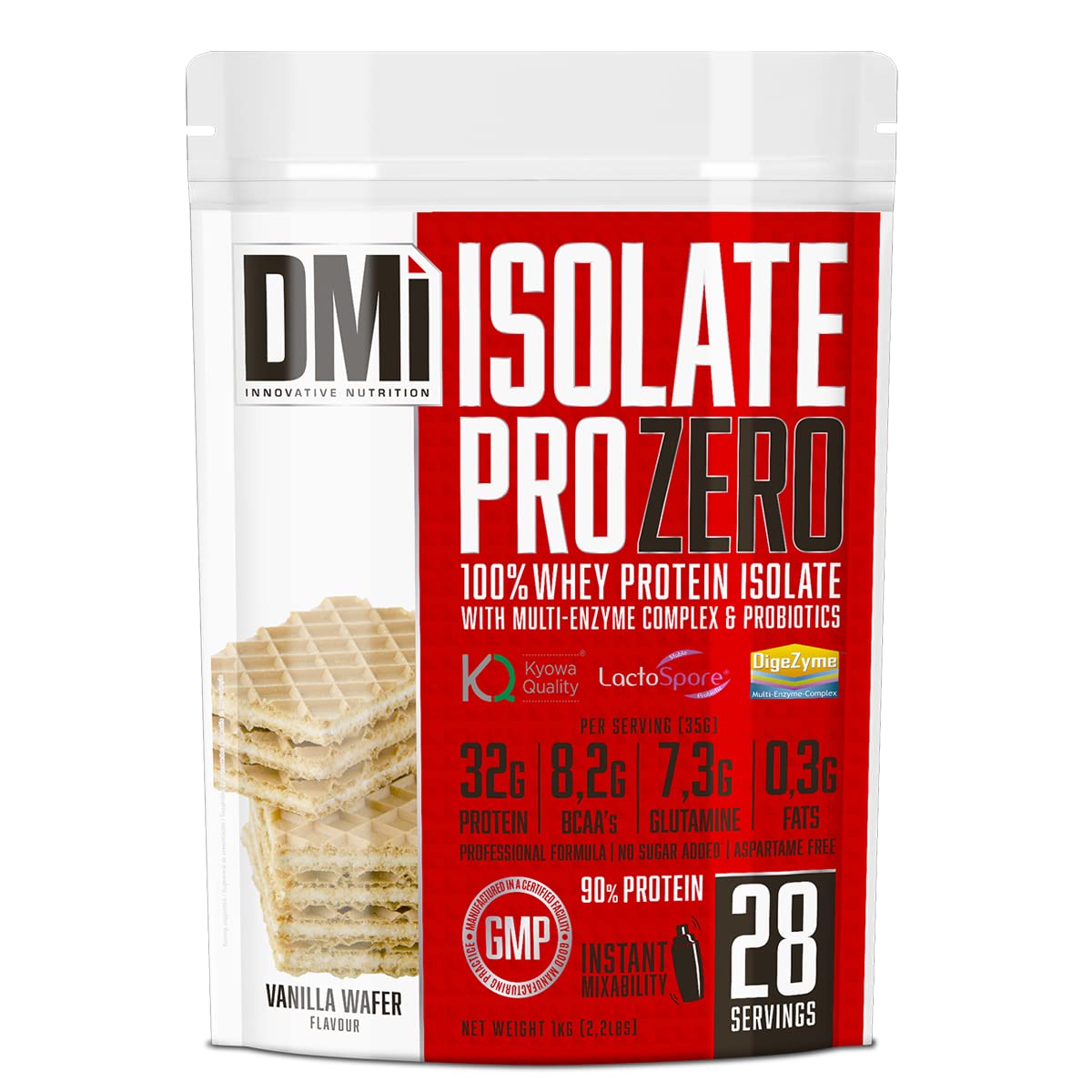 DMI Protéine isolate Pro ZERO-protéine pour la récupération et le développement musculaire – 100 isolat de protéines de lactosérum avec DigeZyme et LactoSpore – Sans sucre ajouté (1 kg, vanille Vanilla Wafer 1 Kg