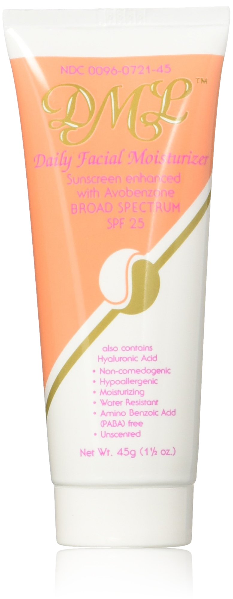 DML Daily Facial Moisturizer, SPF 25, 1.5 oz, is formulated to provide hydration and sun protection for the face. It contains broad spectrum SPF 25 to help shield the skin from UVA and UVB rays. The lightweight formula is suitable for daily application and is designed for all skin types. Packaged in a 1.5 ounce (43 g) tube for convenient use at home or on the go. NDC Code(s): 0096-0721-45