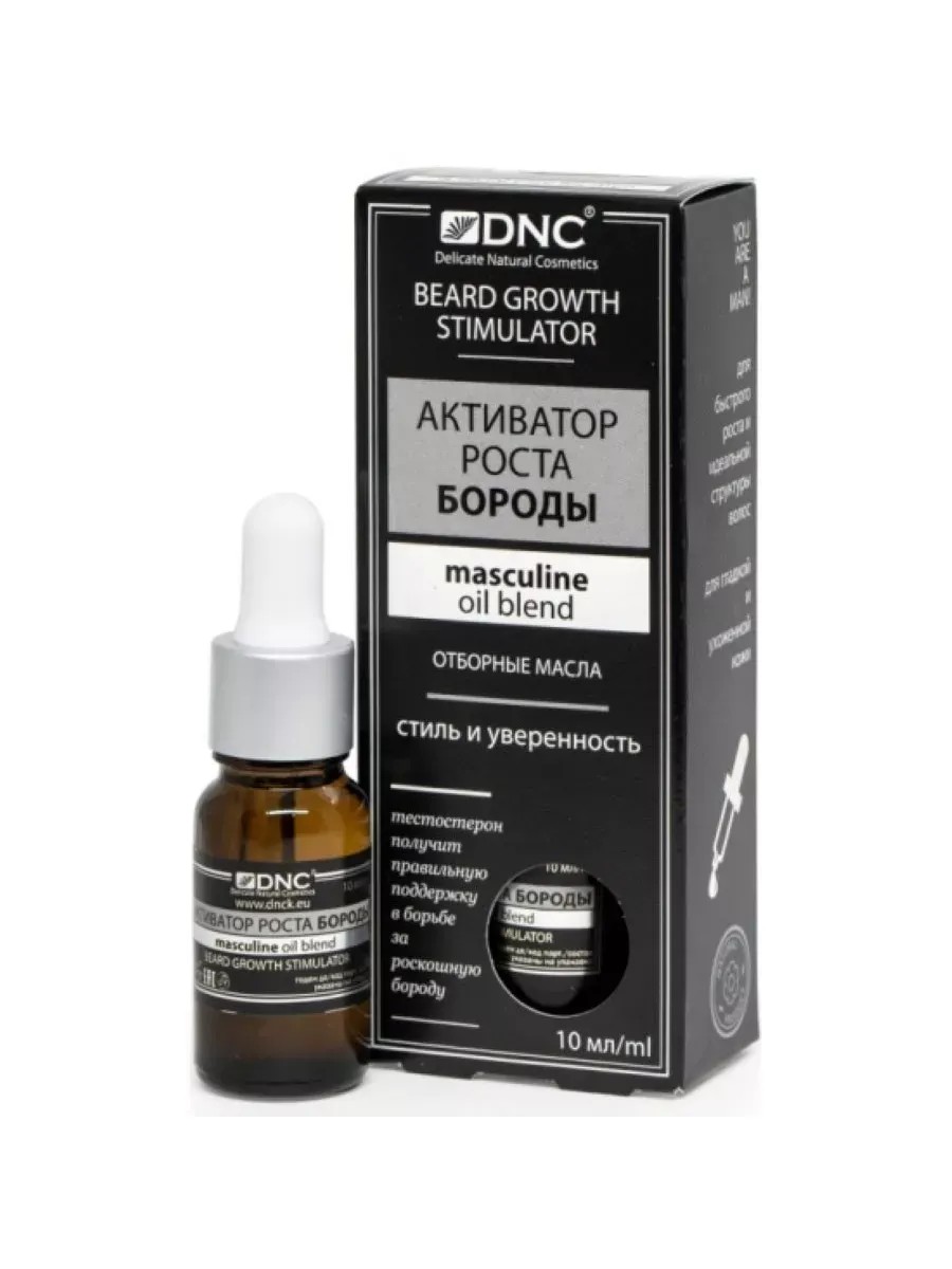 DNC Beard Growth Activator Oil, 10 ml. We've applied a complex of powerful and intense hair follicle cell activators to a light and fine rice oil base. The stimulating substances in natural oils create a system that works on three fundamental levels: hormonal, neuropeptide, and immune. The activator prolongs the intensive hair growth phase and slows the hair loss stage. Healthy skin nourishment allows for denser, more even hair along its entire length, with a well-formed outer layer that adds shine and smoothness.