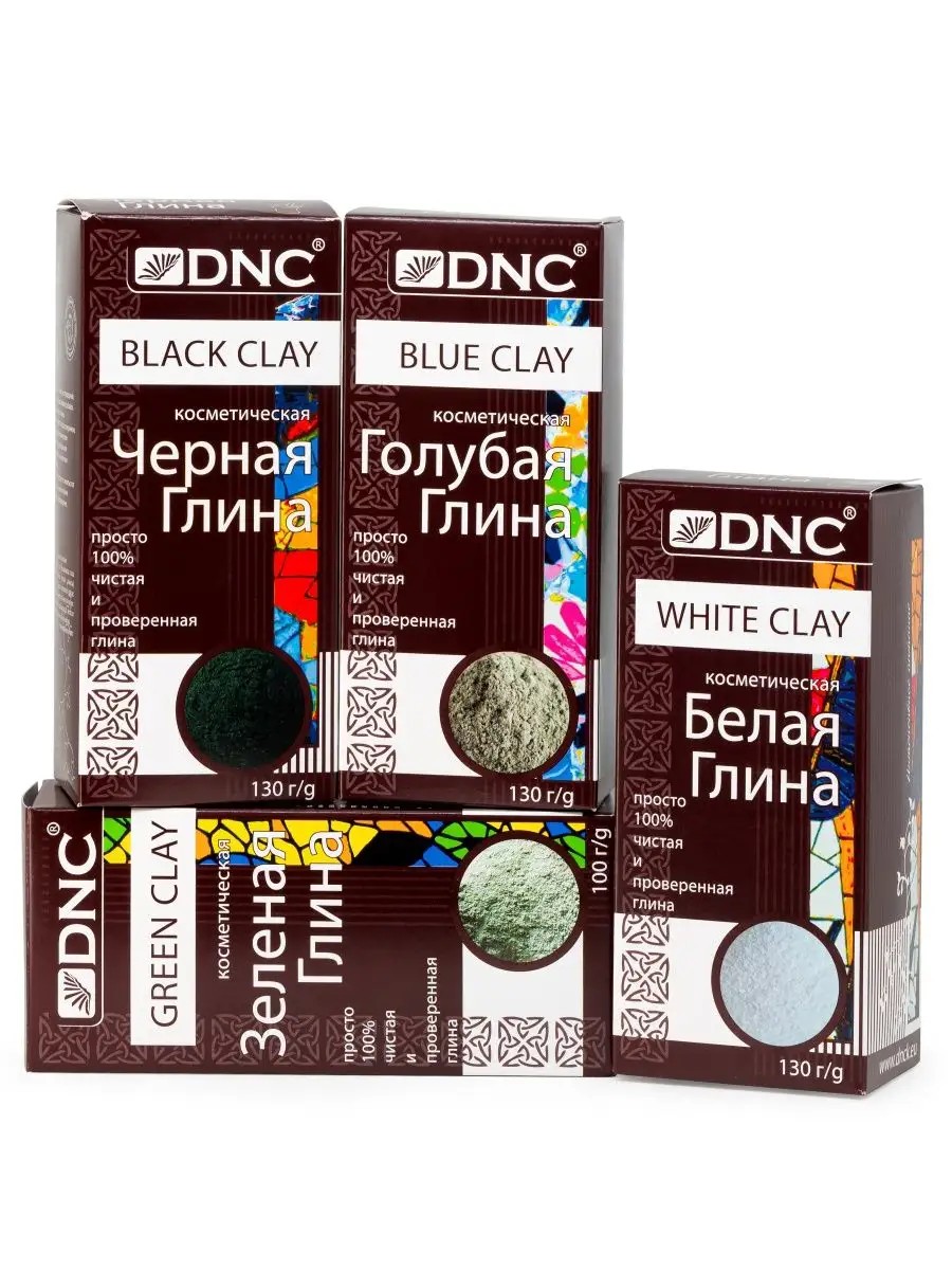 Глина не уступает в эффективности самым дорогостоящим косметическим средствам. Она богата кальцием, магнием, железом, азотом, калием и другими микроэлементами, а также минеральными солями, бывает различных видов (цветов), каждый из которых помогает коже справиться с определенной проблемой. Глина глубоко очищает кожу от загрязнений (что особенно благоприятно для жирной и проблемной кожи), отбеливает ее, улучшает цвет лица, устраняют шелушения и раздражения на коже, разглаживает морщины и выводит токсические вещества. В наборе 3 упаковки глины по 130г (Черная, Голубая, Белая) и 1 упаковка - 100г (Зеленая).Глина подойдет для любой кожи, но, прежде чем выбрать какую маску сделать на основе глины, желательно определится с типом Вашей. Каждая обладает своими уникальными свойствами, богата кальцием, магнием, железом, азотом, калием и другими микроэлементами и минеральными солями. Глина глубоко очищает кожу от загрязнений, отбеливает ее, улучшает цвет, устраняет шелушения и раздражения, разглаживает морщины и выводит токсические вещества. Глина прекрасный помощник и в борьбе с целлюлитом. Косметические свойства ЗЕЛЕНОЙ глины обусловлены ее богатым микроэлементным составом. Благодаря таким полезным веществам, как серебро и кальций, зеленая глина нормализует обменные процессы в клетках кожи, предупреждает ее старение, укрепляет не только кожу, но также волосы и ногти. Маски и ванны из смеси зеленой глины с ароматическими маслами, отварами лекарственных трав, оливковым маслом и другими ингредиентами, помогут коже стать мягкой и бархатистой, сохраняя ее красоту и привлекательность. Зеленая глина также действует как щадящий пилинг, бережно отшелушивая отмершие частички кожи и не повреждая ее. Зеленая глина способствует сужению пор, улучшает функцию сальных желез и обладает тонизирующим свойством. Идеально подходит для жирного и комбинированного типов кожи. Содержит магний, кальций, серебро, марганец, фосфор, цинк, медь, кобальт, молибден. ГОЛУБАЯ глина уникальна, как экологически чистое терапевтическое и косметическое средство для ухода за кожей, ногтями и волосами. Голубая глина содержит минеральные соли и микроэлементы, в которых особенно нуждается кожа (кремнезем, фосфат, железо, азот, кальций, магний, калий, радий). Минеральные соли и микроэлементы содержатся в голубой глине именно в той форме и в тех пропорциях, которые особенно легко усваиваются человеческим организмом. Голубая глина обладает очищающими свойствами, дезинфицирует кожу, стимулирует кровообращение и усиливает обменные процессы в клетках кожи. ЧЕРНАЯ глина является одним из сильнейших природных средств против целлюлита и лишнего веса. Благодаря большому содержанию таких полезных природных микроэлементов, как кварц, кальций, железо, магний, и стронций, глина является прекрасным средством для нормализации клеточного обмена, активизирует процессы детоксикации и жиросжигания. БЕЛАЯ глина - самая мягкая и деликатная из косметических глин, ее также называют каолином. Она обладает мягкими адсорбирующими свойствами и в меньшей степени, чем другие виды глин подсушивает кожу. Глина вбирает в себя избыток кожного сала и выделений потовых желез, устраняет загрязнения, которые есть на коже. В дерматологии ее часто используют в виде мазей и паст, в косметических салонах - 