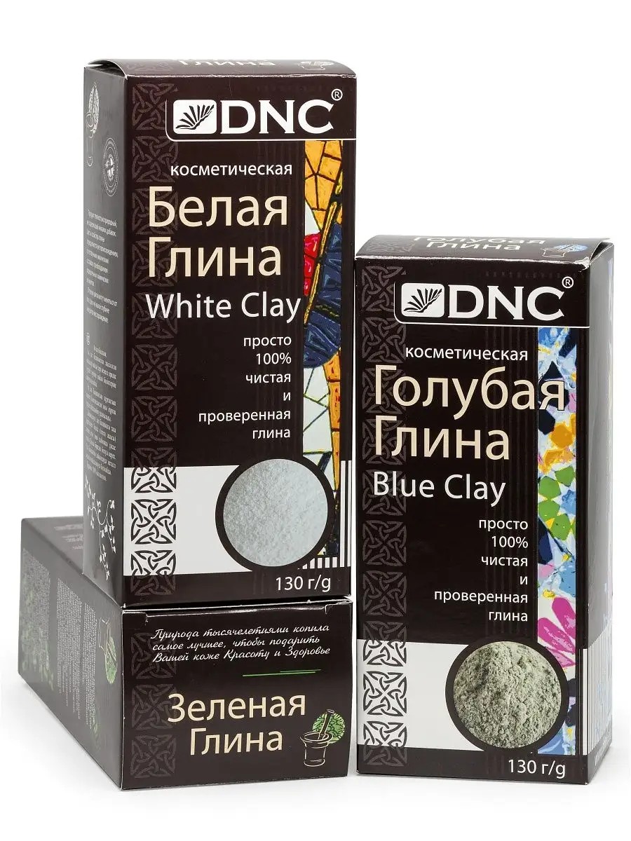 DNC Набор косметической глины: Белая 130 г, Зеленая 100 г, Голубая 130 г