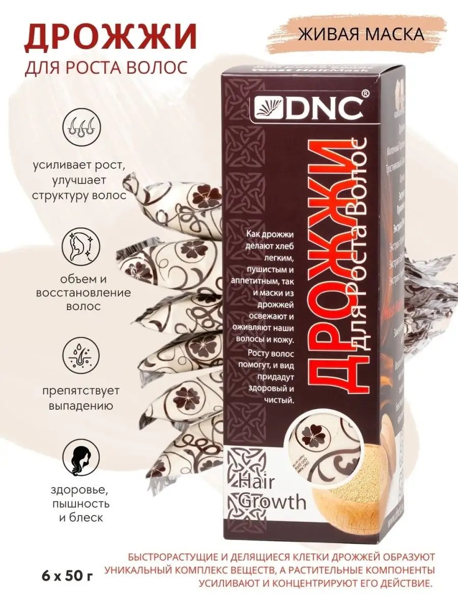 Живая маска для активного роста волос. Удивительно действенное сочетание микроэлементов, ферментов, кислот и белков для питания волос. Быстрорастущие и делящиеся клетки дрожжей образуют уникальный комплекс веществ, а растительные компоненты усиливают и концентрируют его действие. Маска усиливает рост, улучшает структуру волос и благотворно влияет на волосяную луковицу. Наши прабабушки сушили и толкли ржаные сухарики для того чтобы ухаживать за своими волосами. Добавляли туда травки, молоко и глину. Служил такой состав и шампунем и кондиционером и маской. Простые и проверенные временем рецепты красоты не устаревают. Надо просто, в увлечении ультрасовременной косметикой, иногда оборачиваться назад и вспоминать о том огромном опыте, что накапливался, передаваясь из уст в уста, от матерей дочкам, от бабушек внучкам. Старинные средства действуют. Это легко проверить самим. Как дрожжи делают хлеб легким, пушистым и аппетитным, так и маски из дрожжей освежают и оживляют наши волосы и кожу. Росту волос помогут, и вид волосам придадут здоровый и чистый. Такое сочетание микроэлементов, ферментов, кислот и белков невозможно создать в обычных масках, время их жизни ограничено и длительное хранение невозможно. Дрожжи обогащены комплексом растительных компонентов для усиления и концентрации действия маски. Волосы после этой маски очень пышные, блестящие и красиво лежат! Дрожжи для роста волос состав : Hydrolyzed Brewers Yeast Protein (Дрожжи Сухие), Lactis Proteinum (Молочный протеин), Sucrose (Тростниковый сахар), Brassica Juncea Seeds Powder (Горчица), Utrica Dioica Extract (Экстракт крапивы), Centaurea Cyanus Extract (Экстракт василька), Chamomilla recutita Extract (Экстракт ромашки),Allium Cepa (Onion) Bulb Extract (Экстракт Лука), Propolis Extract (Экстракт прополиса). В данный артикул входит 6 пакетиков с маской (каждый по 50г).